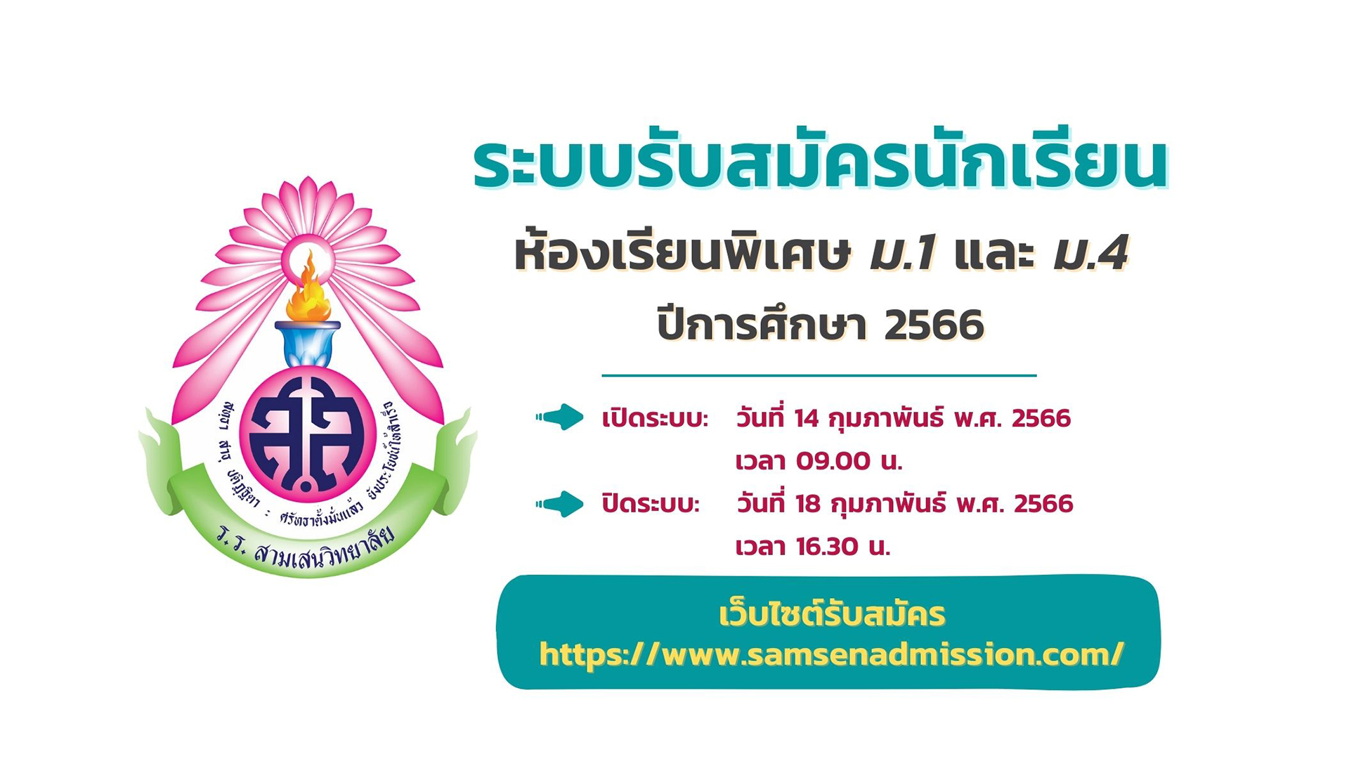 📌ผู้ที่ประสงค์สมัครเข้าศึกษา ม.1 และ ม.4 ห้องเรียนพิเศษ ปีการศึกษา 2566 ของโรงเรียนสามเสนวิทยาลัย โปรดศึกษาประกาศการรับนักเรียน คู่มือการรับสมัคร และเตรียมหลักฐานการสมัครให้พร้อมก่อนทำการสมัคร