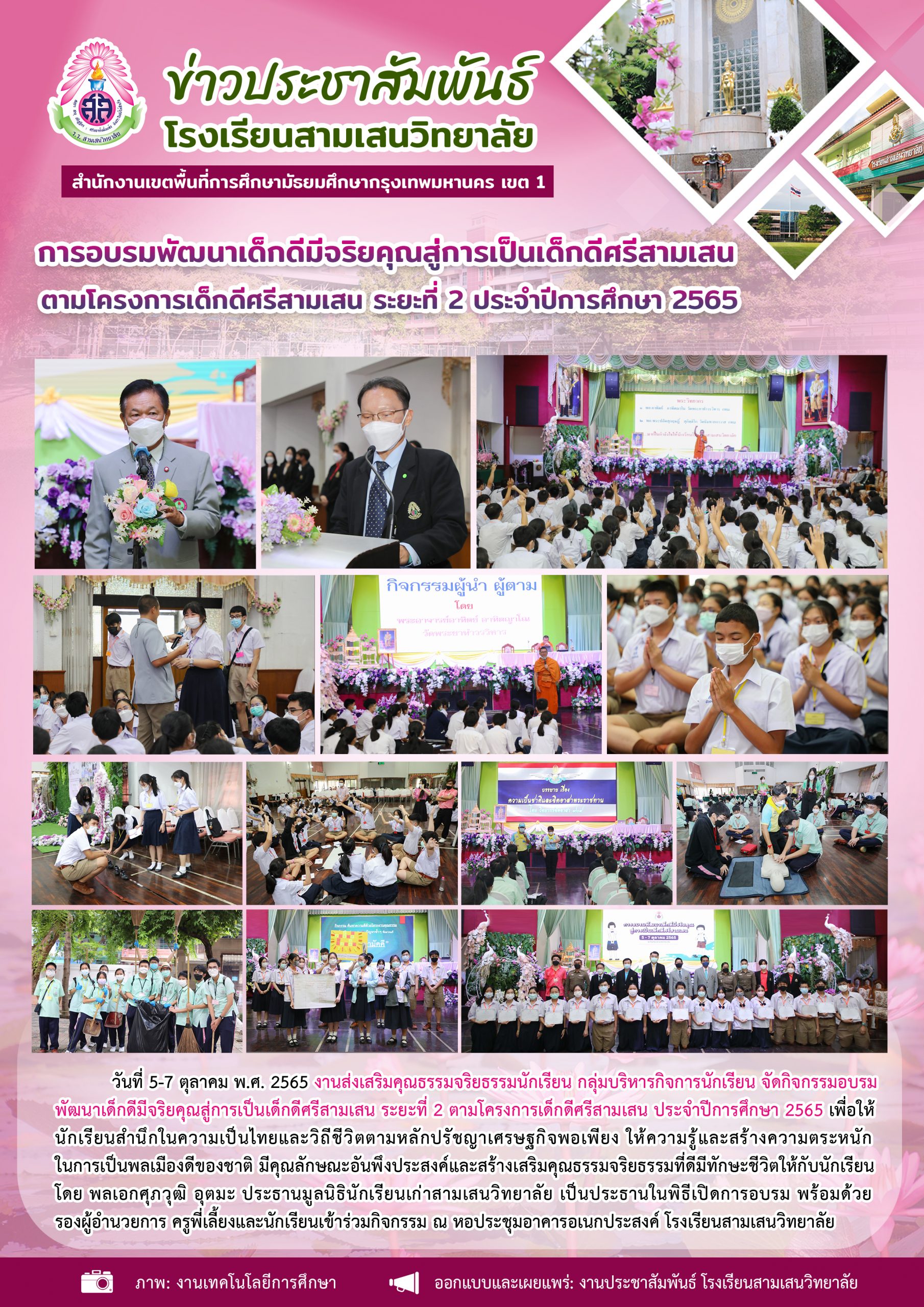 5-7 ตุลาคม 2565 กิจกรรมอบรมพัฒนาเด็กดีมีจริยคุณสู่การเป็นเด็กดีศรีสามเสน ระยะที่ 2 ตามโครงการเด็กดีศรีสามเสน ประจำปีการศึกษา 2565