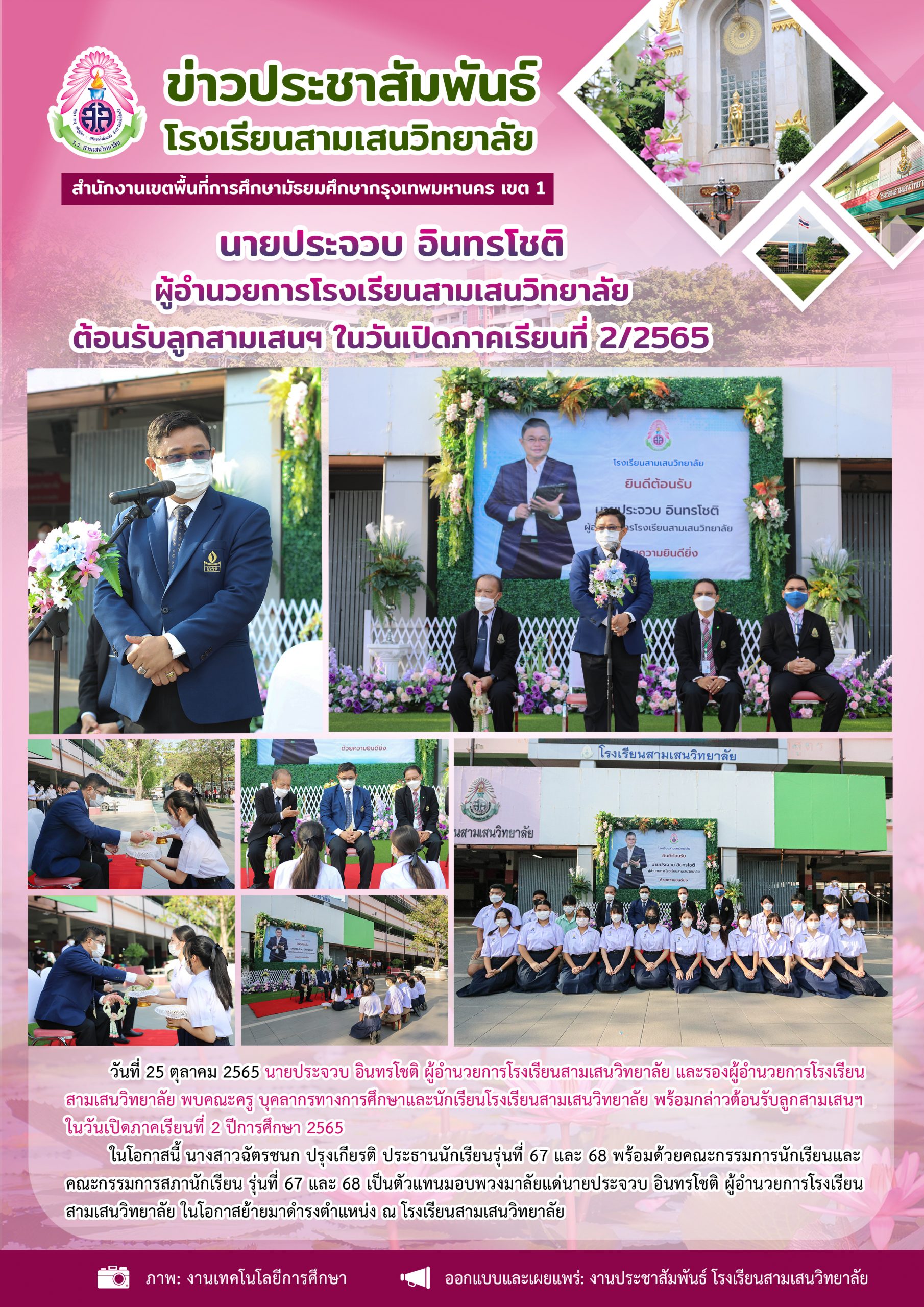 25 ตุลาคม 2565 นายประจวบ อินทรโชติ ผู้อำนวยการโรงเรียนสามเสนวิทยาลัย ต้อนรับลูกสามเสนฯ ในวันเปิดภาคเรียนที่ 2/2565