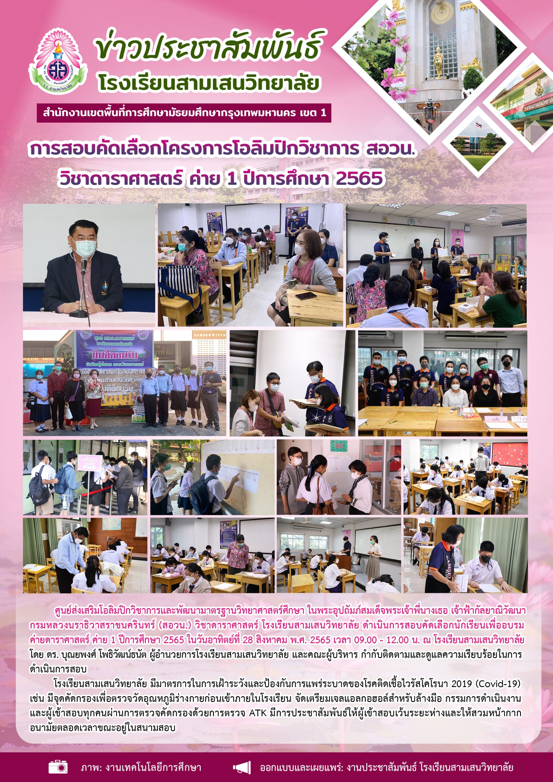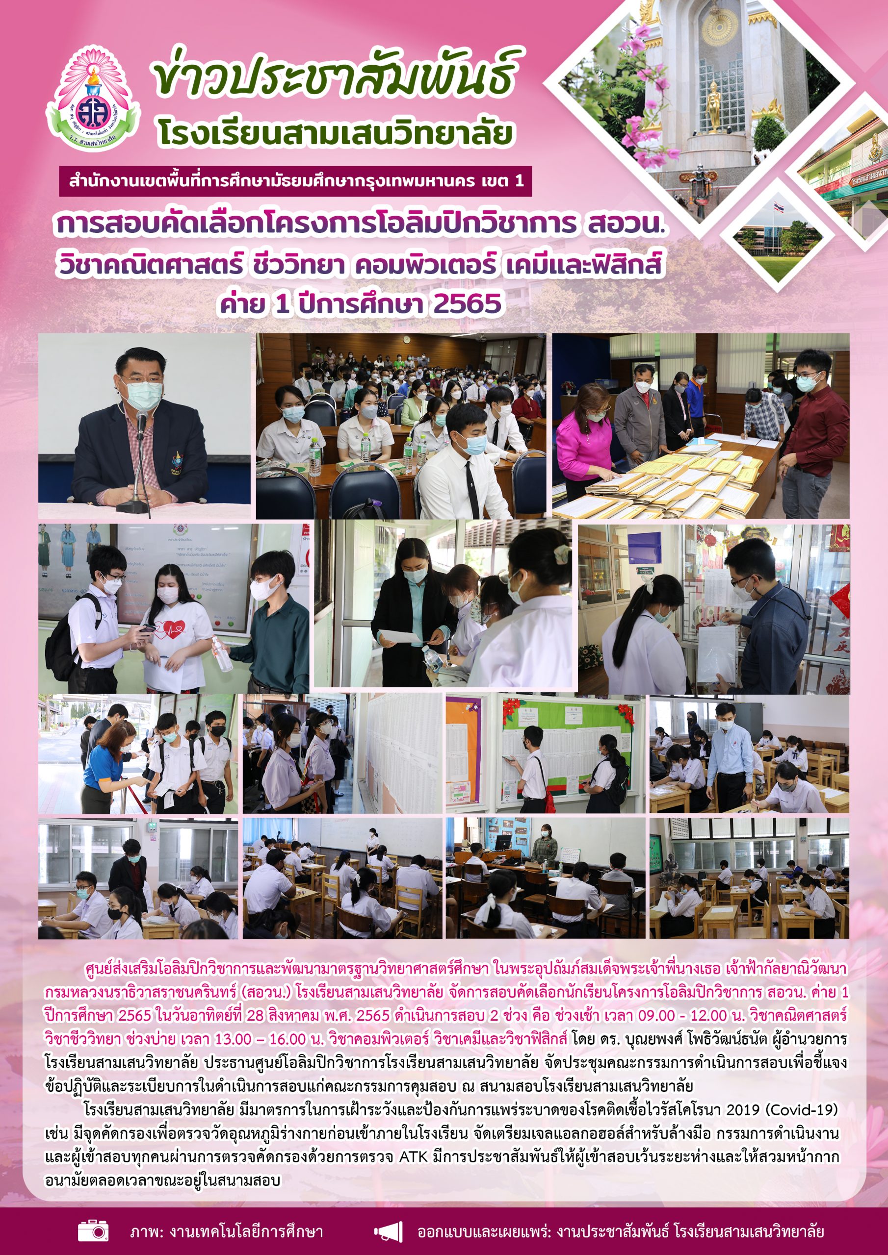 28 สิงหาคม 2565 การสอบคัดเลือกโครงการโอลิมปิกวิชาการ สอวน. วิชาคณิตศาสตร์ ชีววิทยา คอมพิวเตอร์ เคมีและฟิสิกส์ ค่าย 1 ปีการศึกษา 2565
