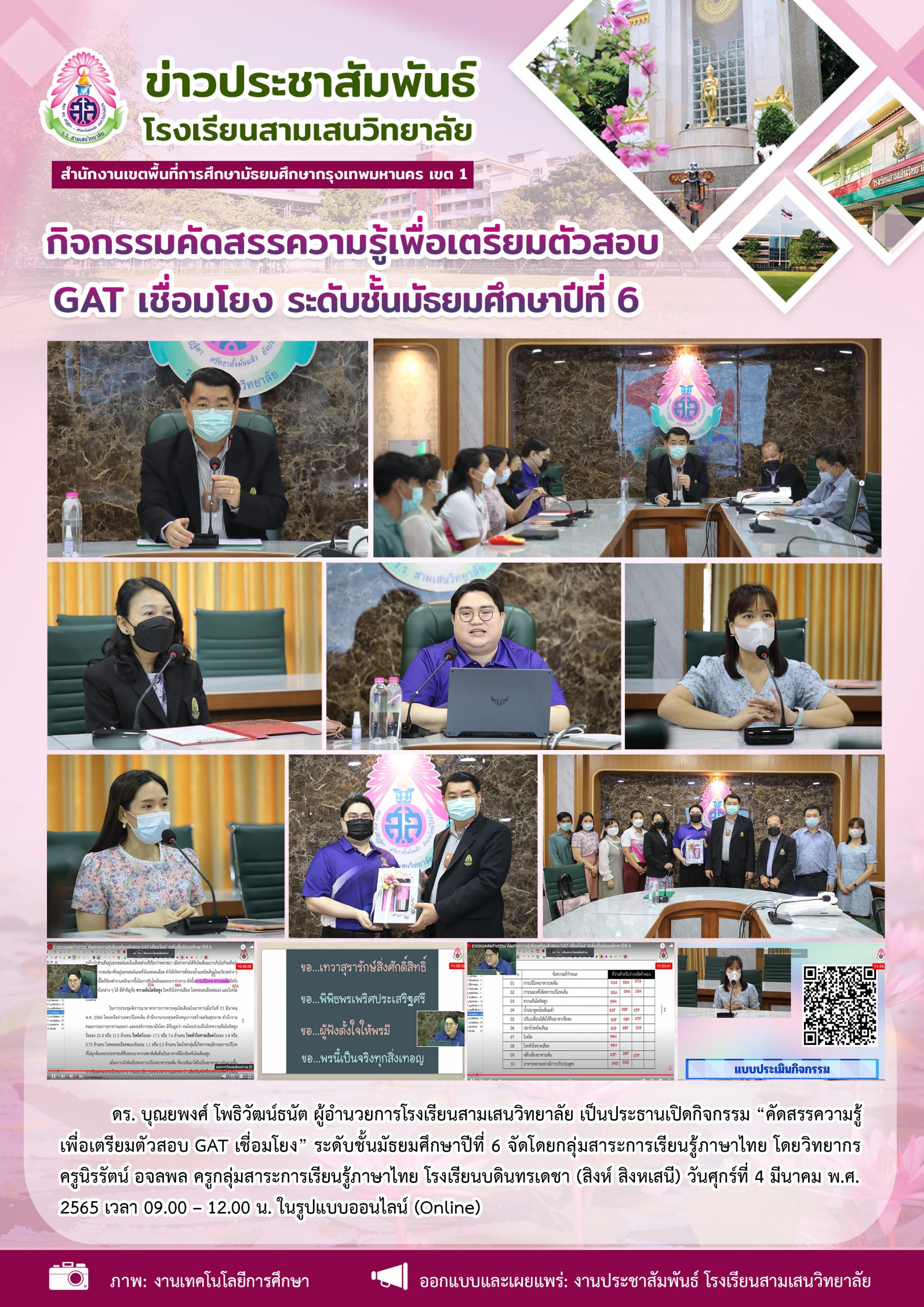5 มีนาคม 2565 กิจกรรม “คัดสรรความรู้เพื่อเตรียมตัวสอบ GAT เชื่อมโยง” ระดับชั้นมัธยมศึกษาปีที่ 6