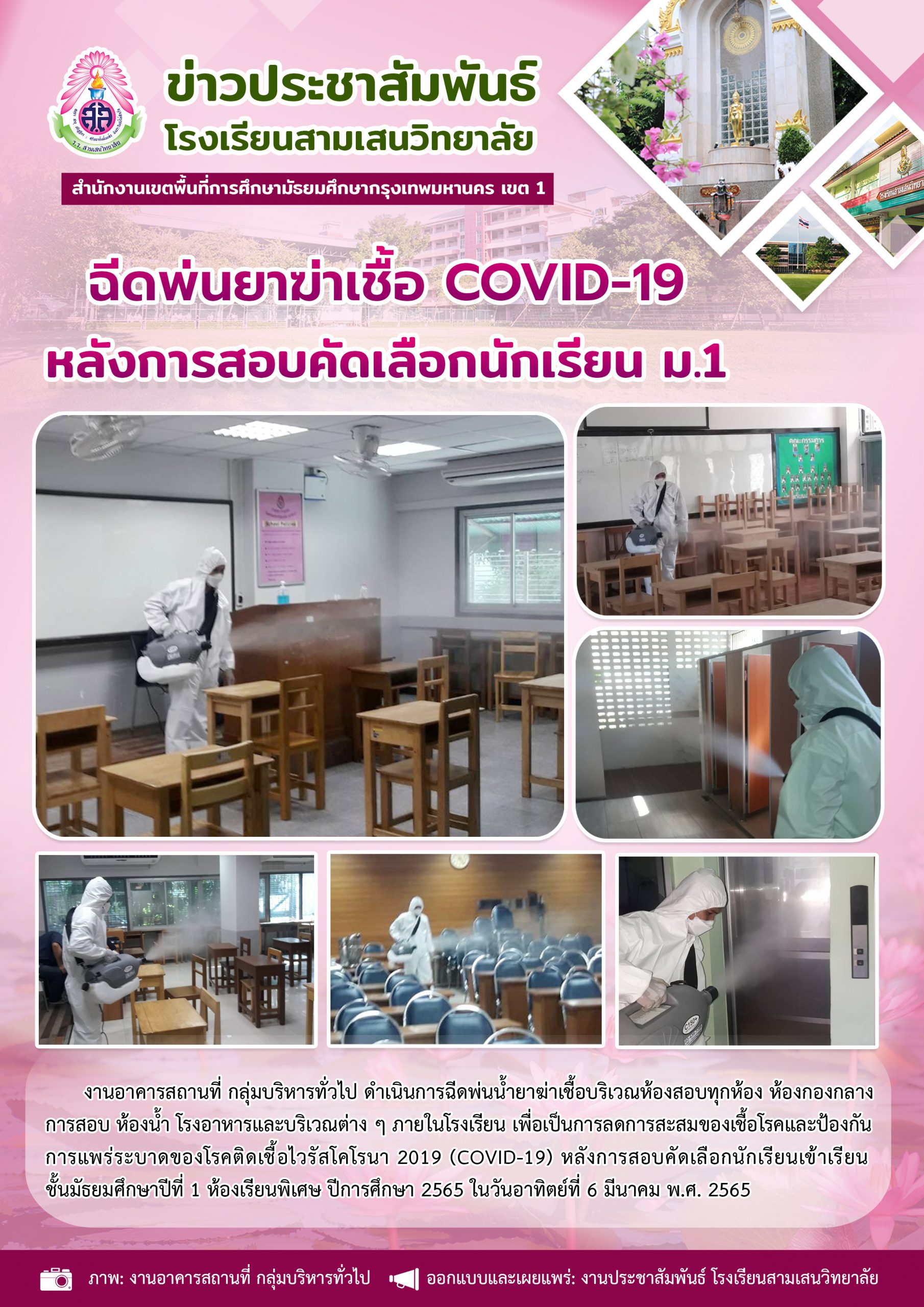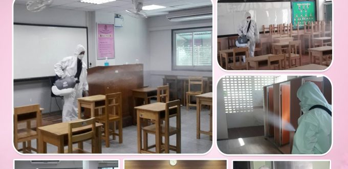 ฉีดพ่นยาฆ่าเชื้อ COVID-19 หลังการสอบคัดเลือกนักเรียน ม.1