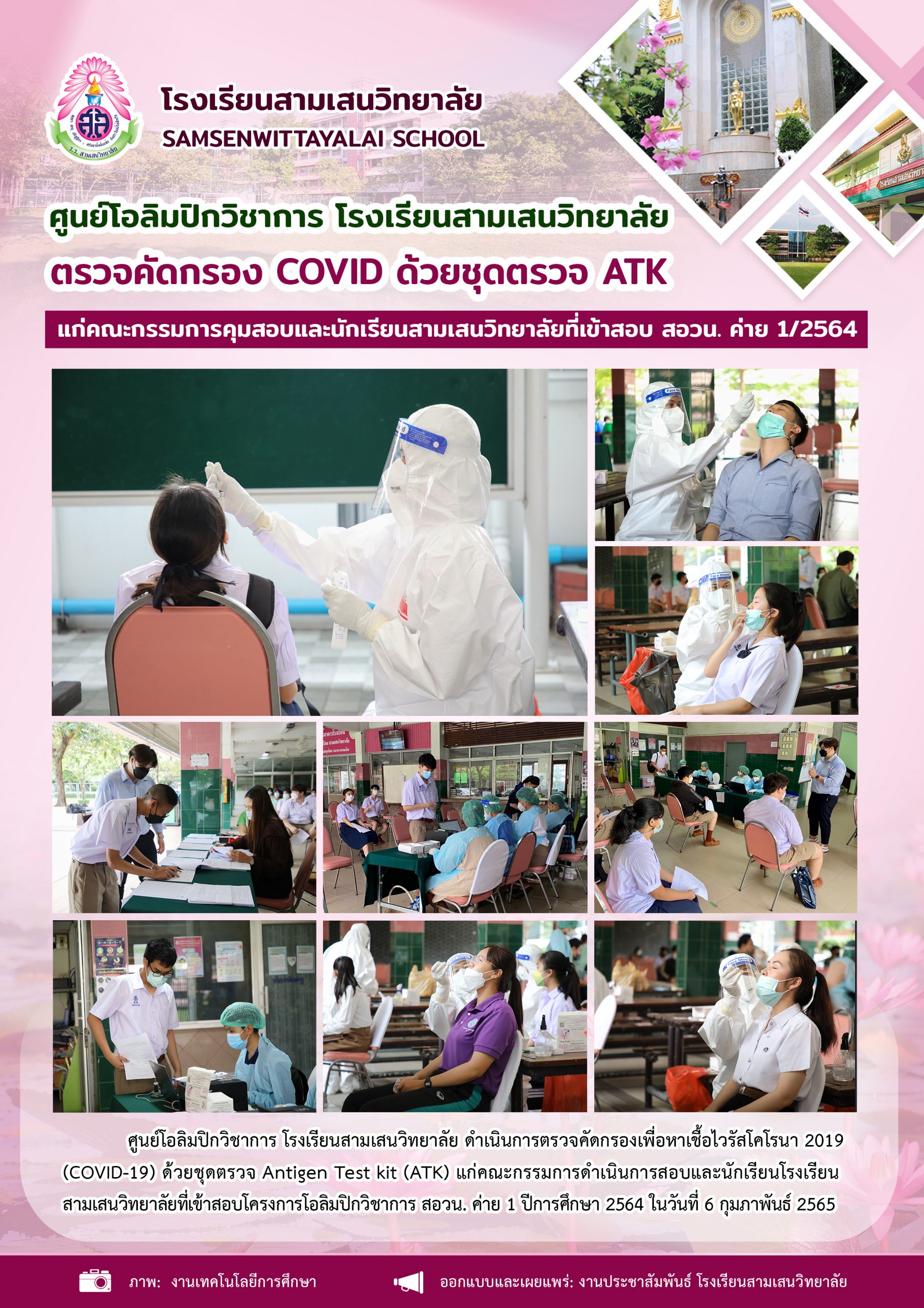 ศูนย์โอลิมปิกวิชาการ โรงเรียนสามเสนวิทยาลัย ตรวจคัดกรอง COVID ด้วยชุดตรวจ ATK แก่คณะกรรมการคุมสอบและนักเรียนสามเสนวิทยาลัยที่เข้าสอบโครงการโอลิมปิกวิชาการ สอวน. ค่าย 1 ปีการศึกษา 2564