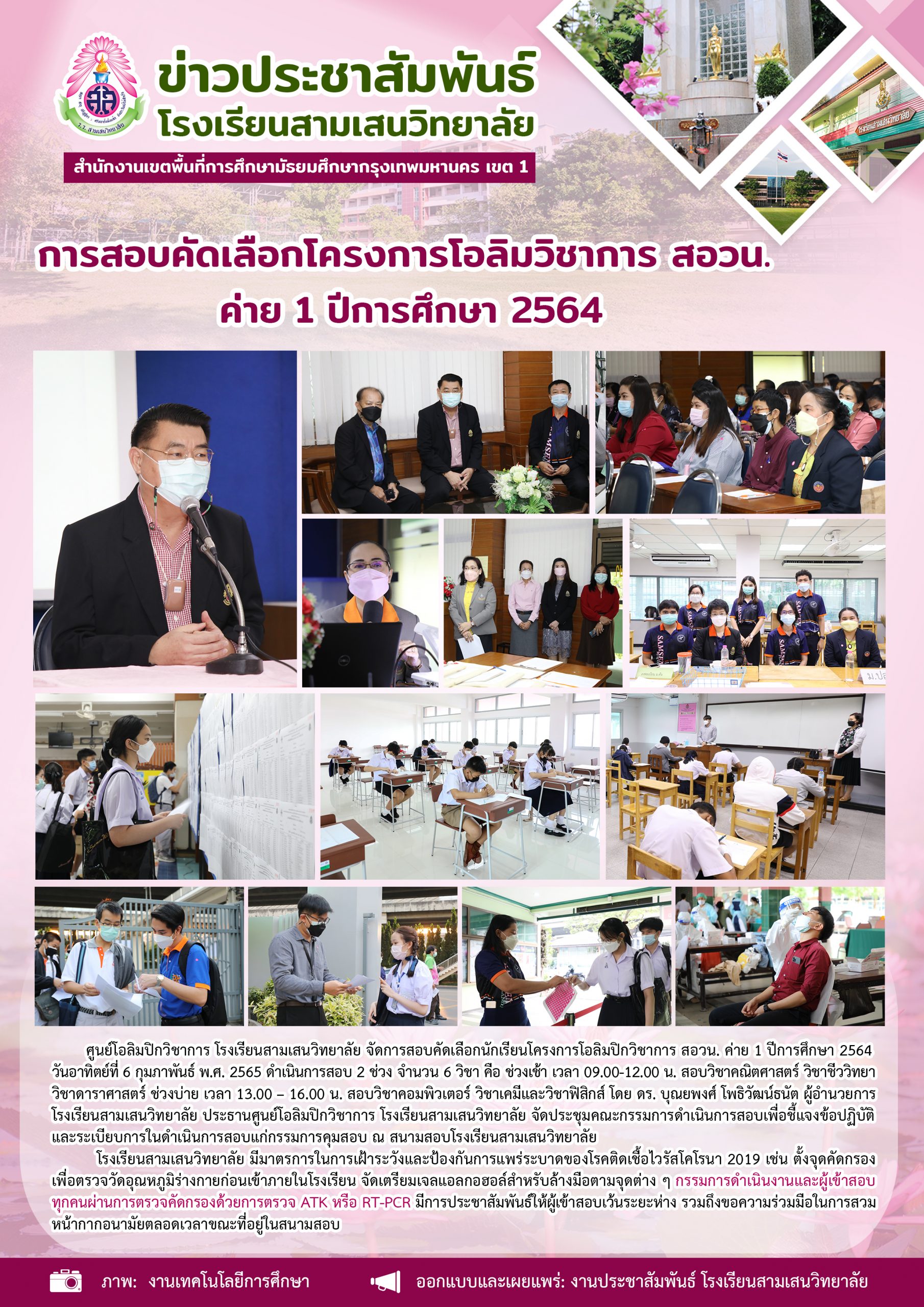 6 กุมภาพันธ์ 2565 การสอบคัดเลือกโครงการโอลิมวิชาการ สอวน. ค่าย 1 ปีการศึกษา 2564 ศูนย์โอลิมปิกวิชาการ โรงเรียนสามเสนวิทยาลัย