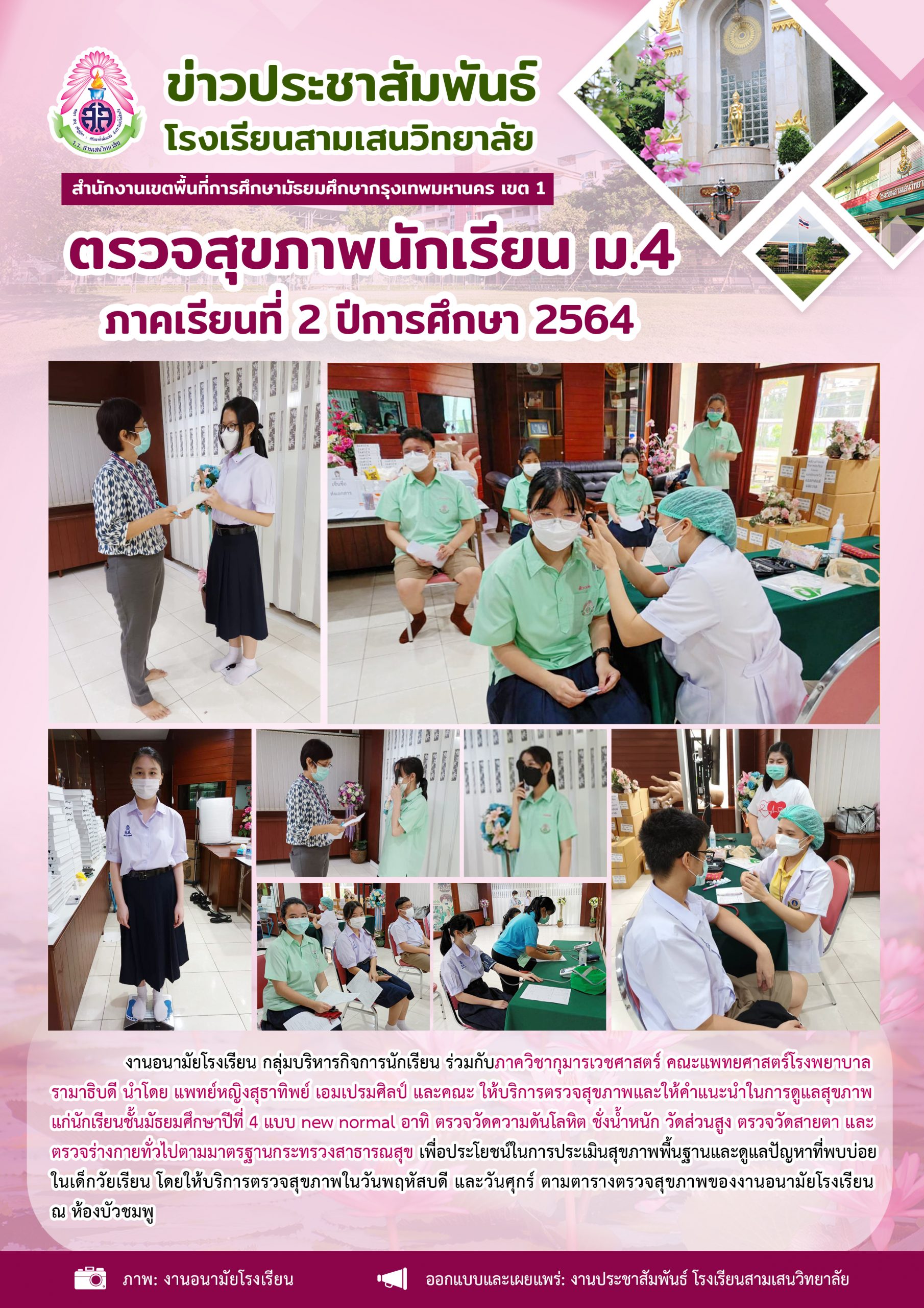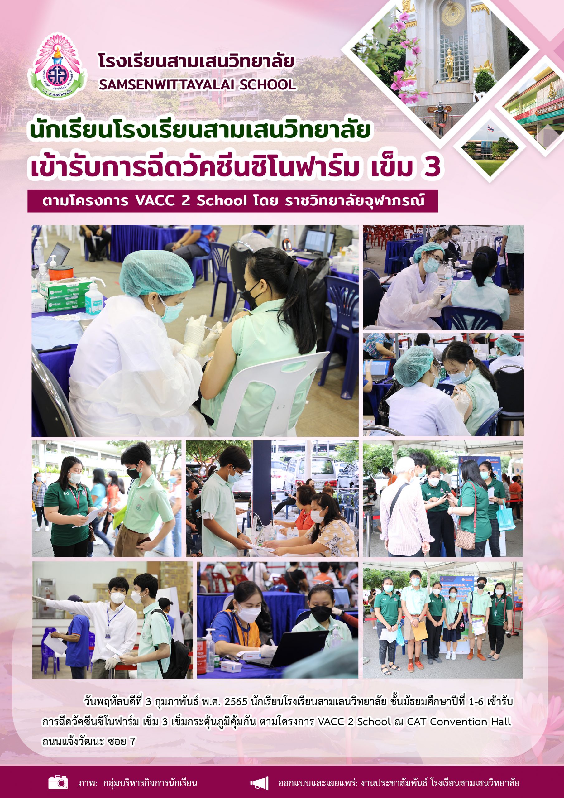 3 กุมภาพันธ์ 2564 นักเรียนโรงเรียนสามเสนวิทยาลัยเข้ารับการฉีดวัคซีนซิโนฟาร์ม เข็ม 3 ตามโครงการ VACC 2 School โดย ราชวิทยาลัยจุฬาภรณ์