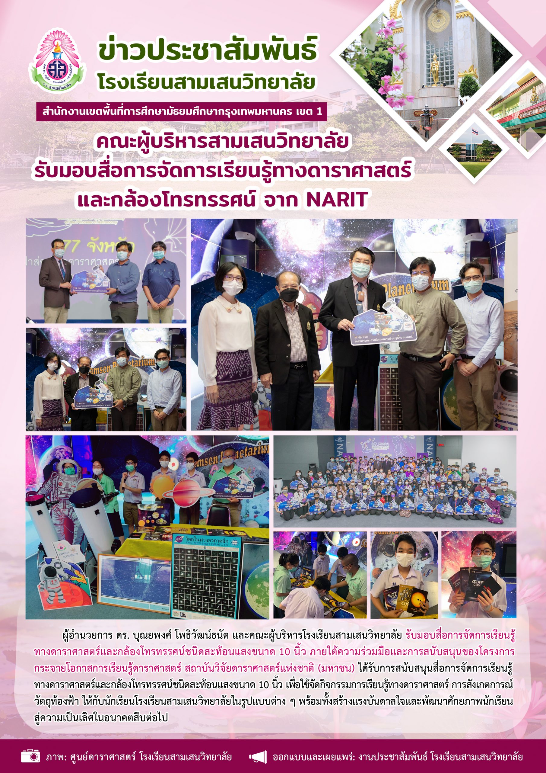 คณะผู้บริหารโรงเรียนสามเสนวิทยาลัย รับมอบสื่อการจัดการเรียนรู้ทางดาราศาสตร์และกล้องโทรทัศน์ จาก NARIT