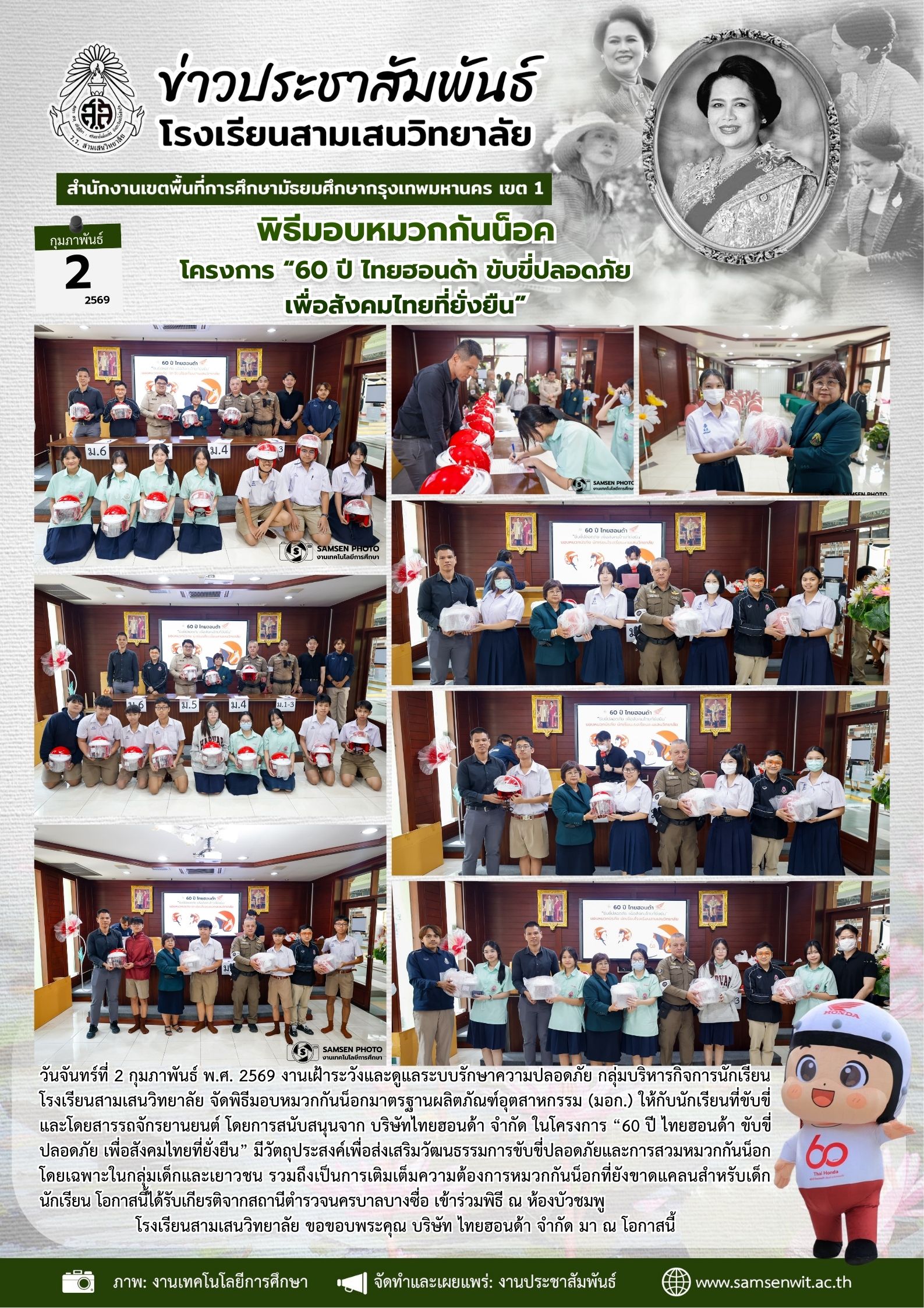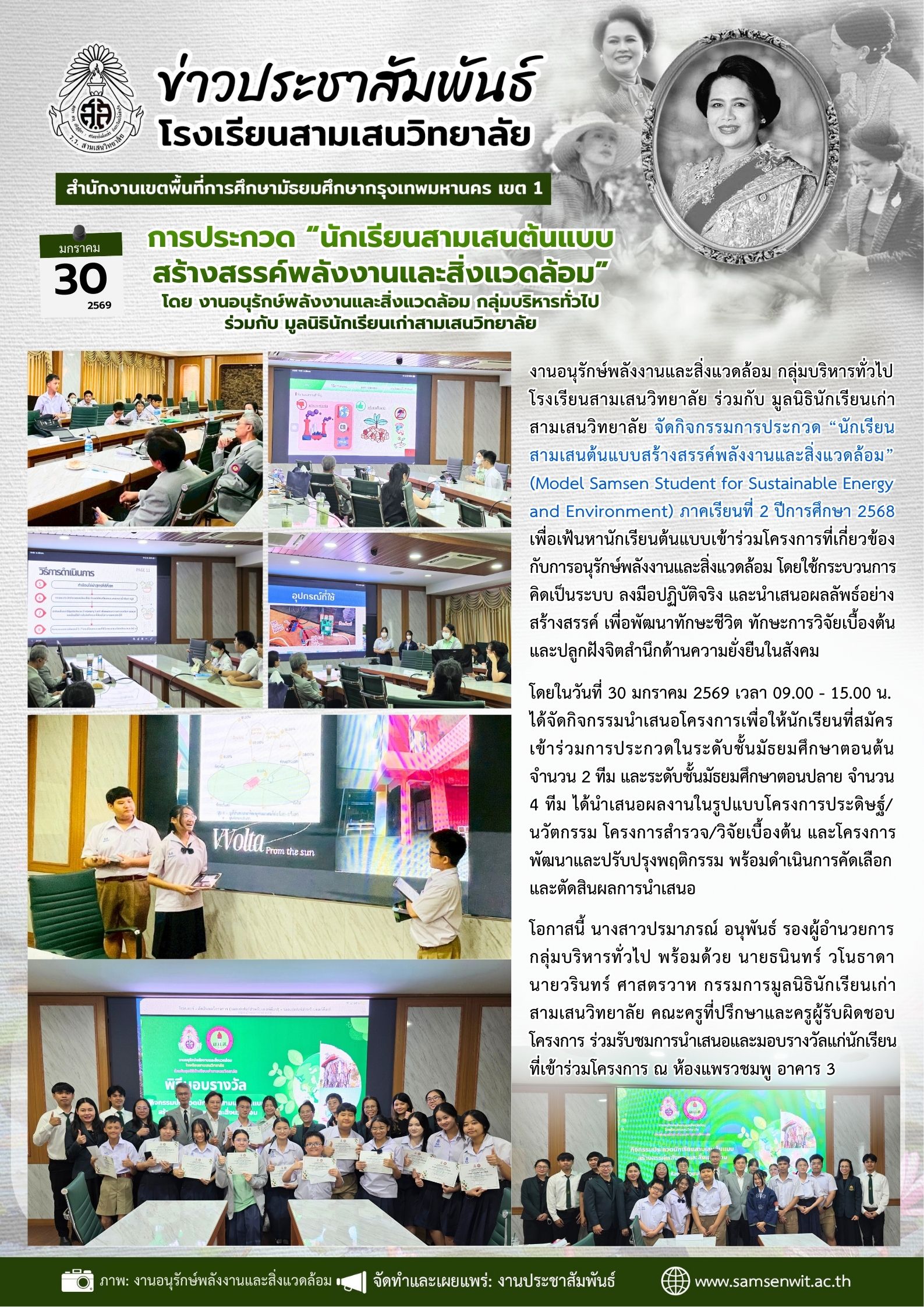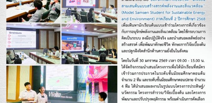 30 มกราคม 2569 กิจกรรมการประกวด “นักเรียน สามเสนต้นแบบสร้างสรรค์พลังงานและสิ่งแวดล้อม” (Model Samsen Student for Sustainable Energy and Environment) ภาคเรียนที่ 2 ปีการศึกษา 2568