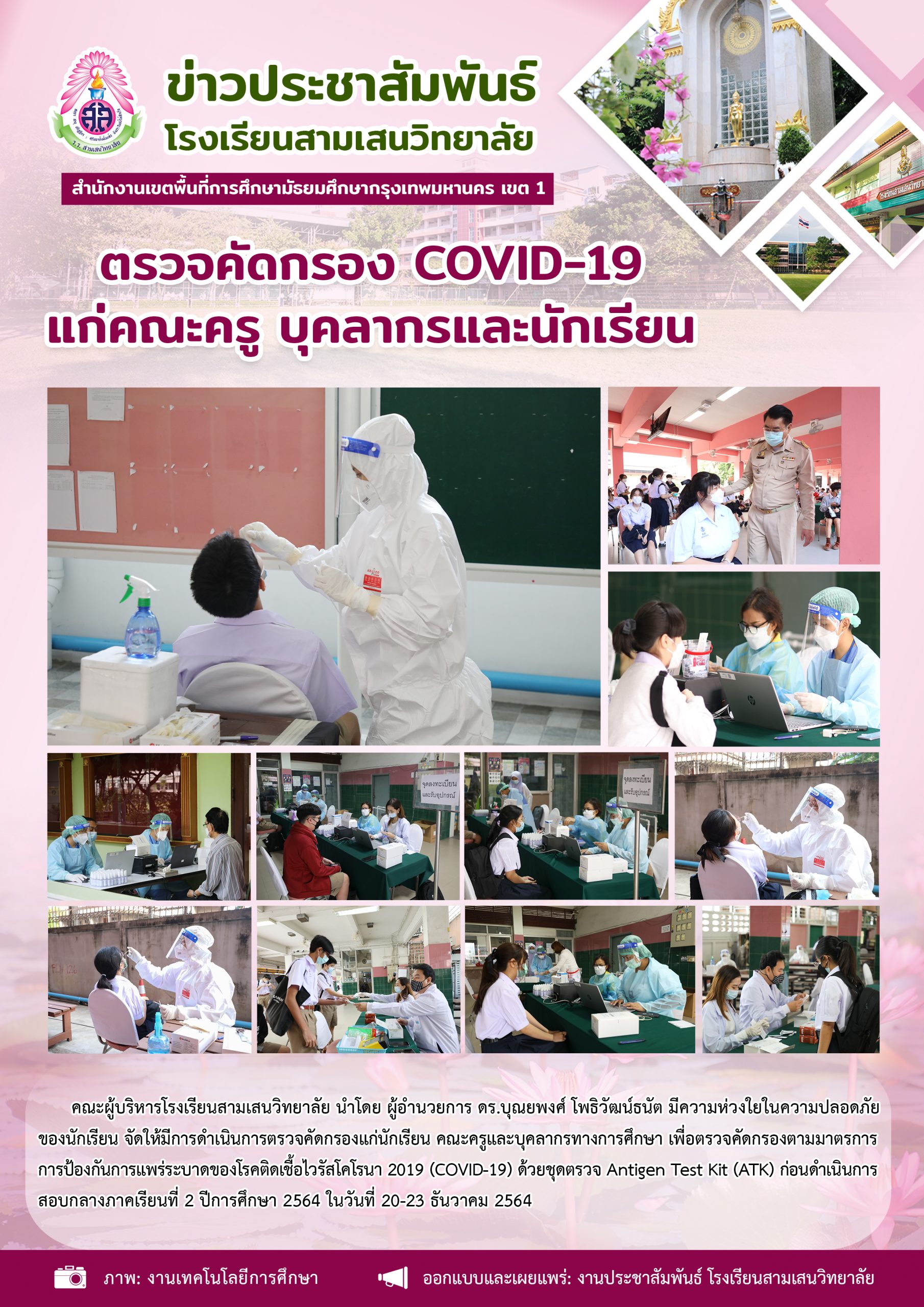 20-23 ธันวาคม 2564 โรงเรียนสามเสนวิทยาลัย จัดให้มีการตรวจคัดกรอง COVID-19 แก่คณะครู บุคลากรทางการศึกษาและนักเรียน ด้วยชุดตรวจ ATK ก่อนการสอบกลางภาคเรียนที่ 2/2564