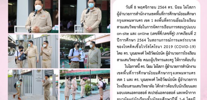 ผอ. สพม. กท 1 ลงพื้นที่ตรวจเยี่ยมโรงเรียนสามเสนวิทยาลัย ในการจัดการเรียนการสอนรูปแบบ on-site และ online ภาคเรียนที่ 2 ปีการศึกษา 2564 ในสถานการณ์การแพร่ระบาดของ COVID-19