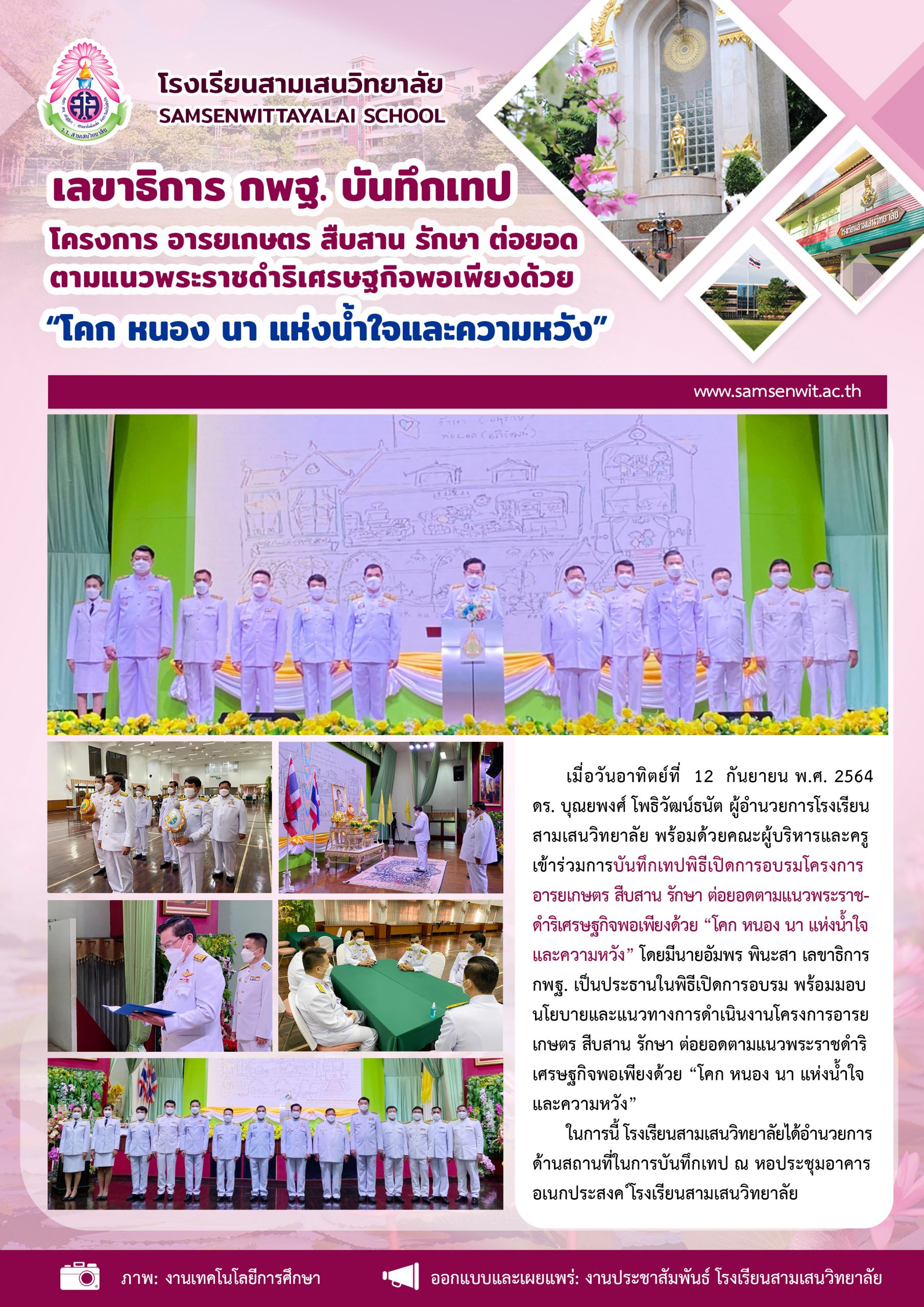 เลขาธิการ กพฐ. บันทึกเทป โครงการ อารยเกษตร สืบสาน รักษา ต่อยอดตามแนวพระราช- ดำริเศรษฐกิจพอเพียงด้วย “โคก หนอง นา แห่งน้ำใจและความหวัง”
