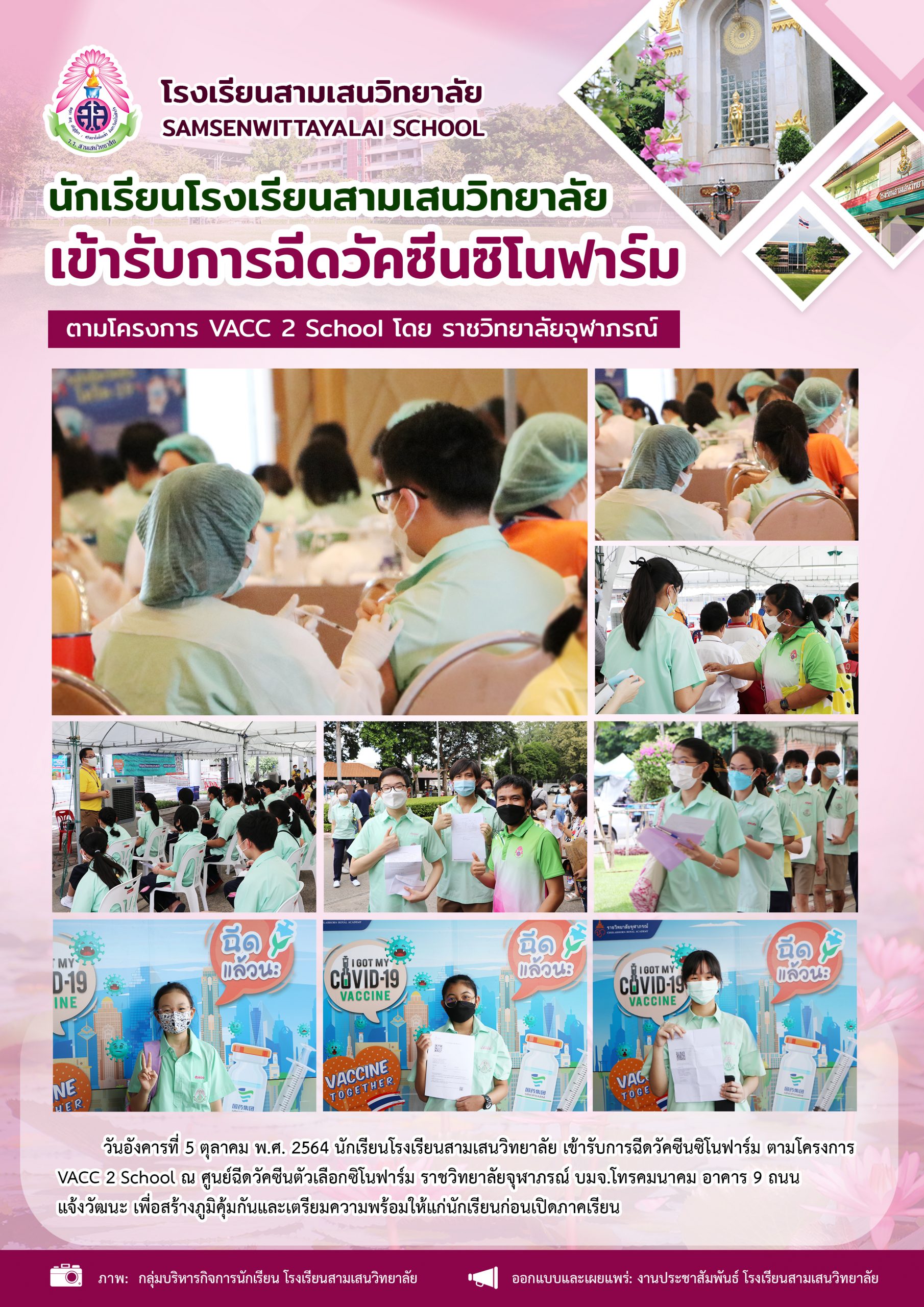 5 ตุลาคม 2564 นักเรียนโรงเรียนสามเสนวิทยาลัย เข้ารับการฉีดวัคซีน “ซิโนฟาร์ม” ตามโครงการ VACC 2 School โดย ราชวิทยาลัยจุฬาภรณ์