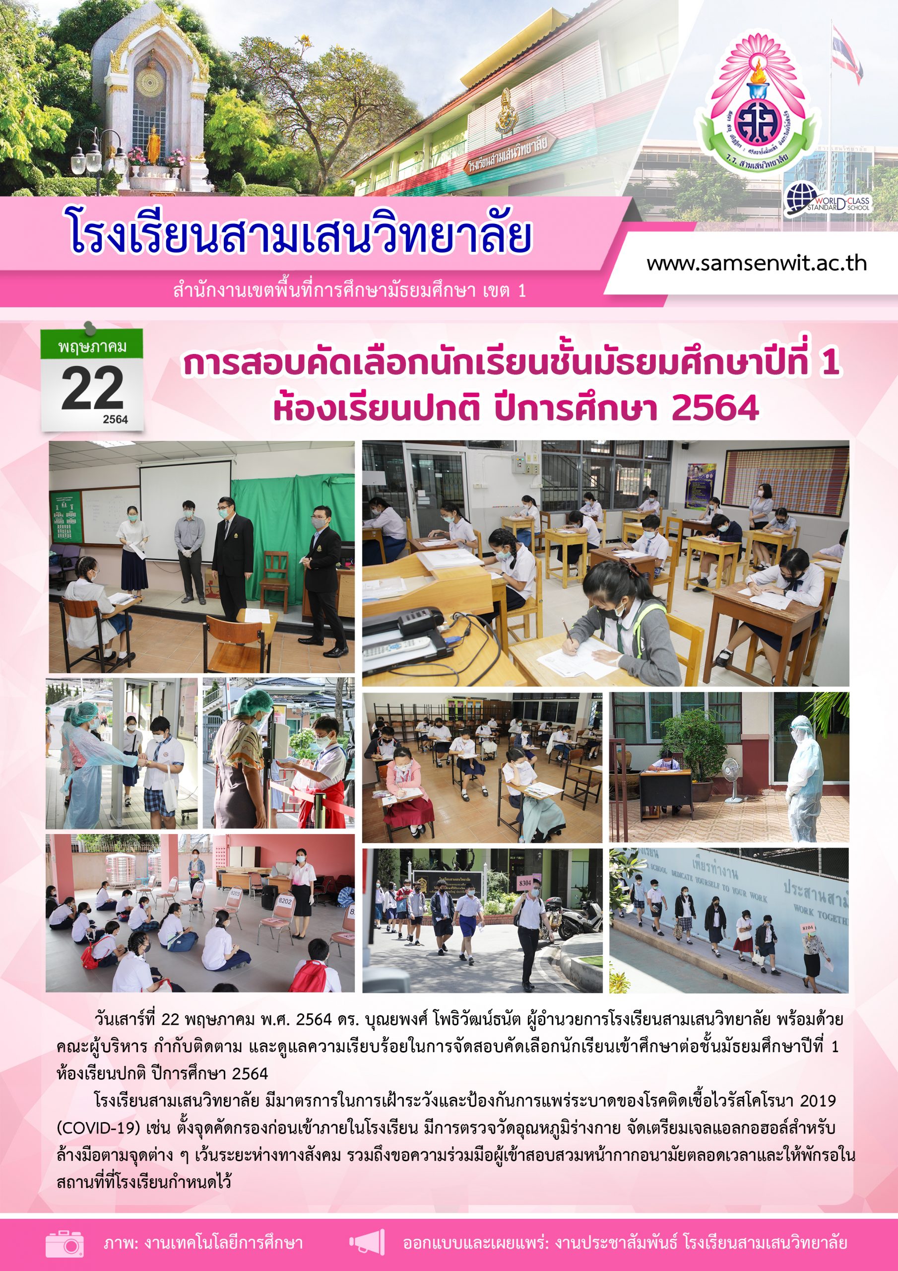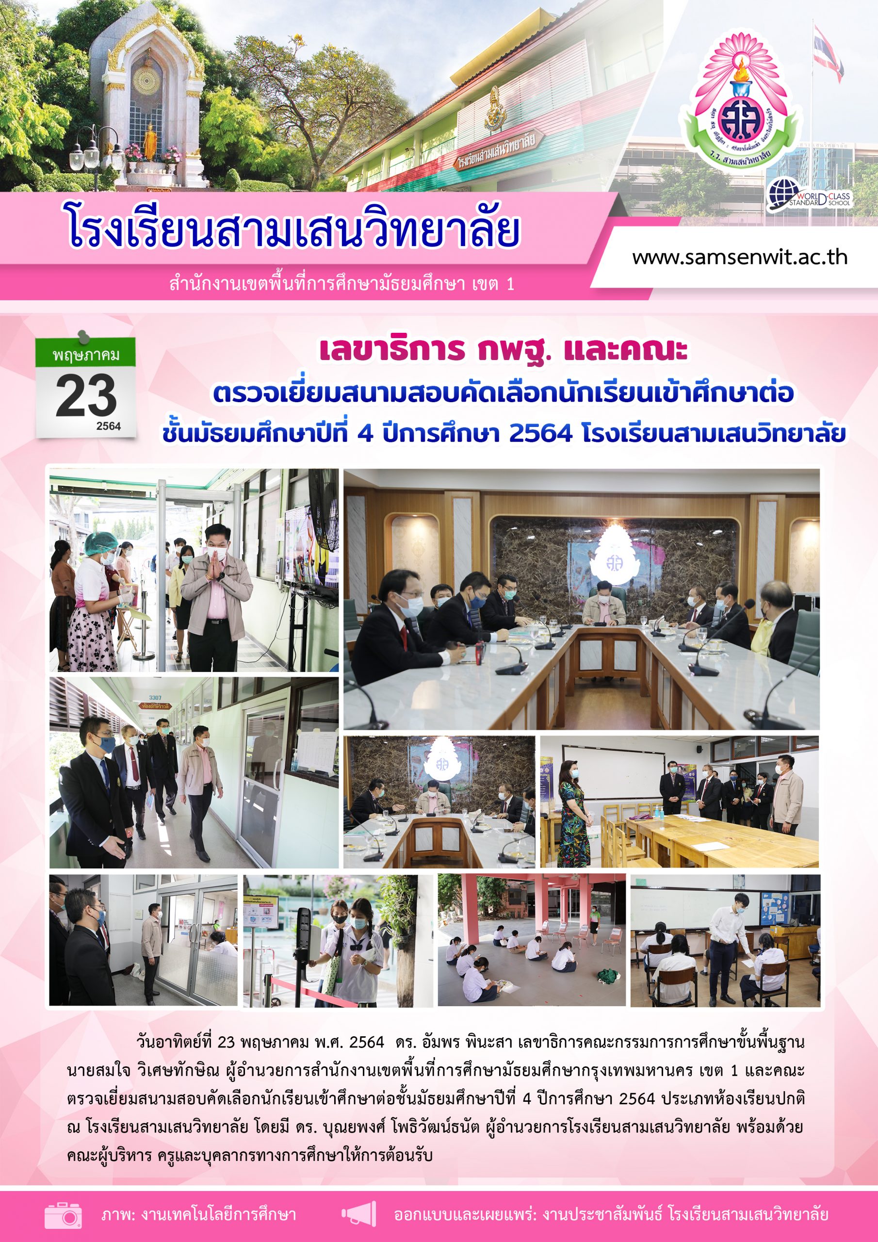 เลขาธิการ กพฐ. และคณะ ตรวจเยี่ยมสนามสอบคัดเลือกนักเรียนเข้าศึกษาต่อชั้นมัธยมศึกษาปีที่ 4 ปีการศึกษา 2564 โรงเรียนสามเสนวิทยาลัย วันที่ 23 พฤษภาคม 2564