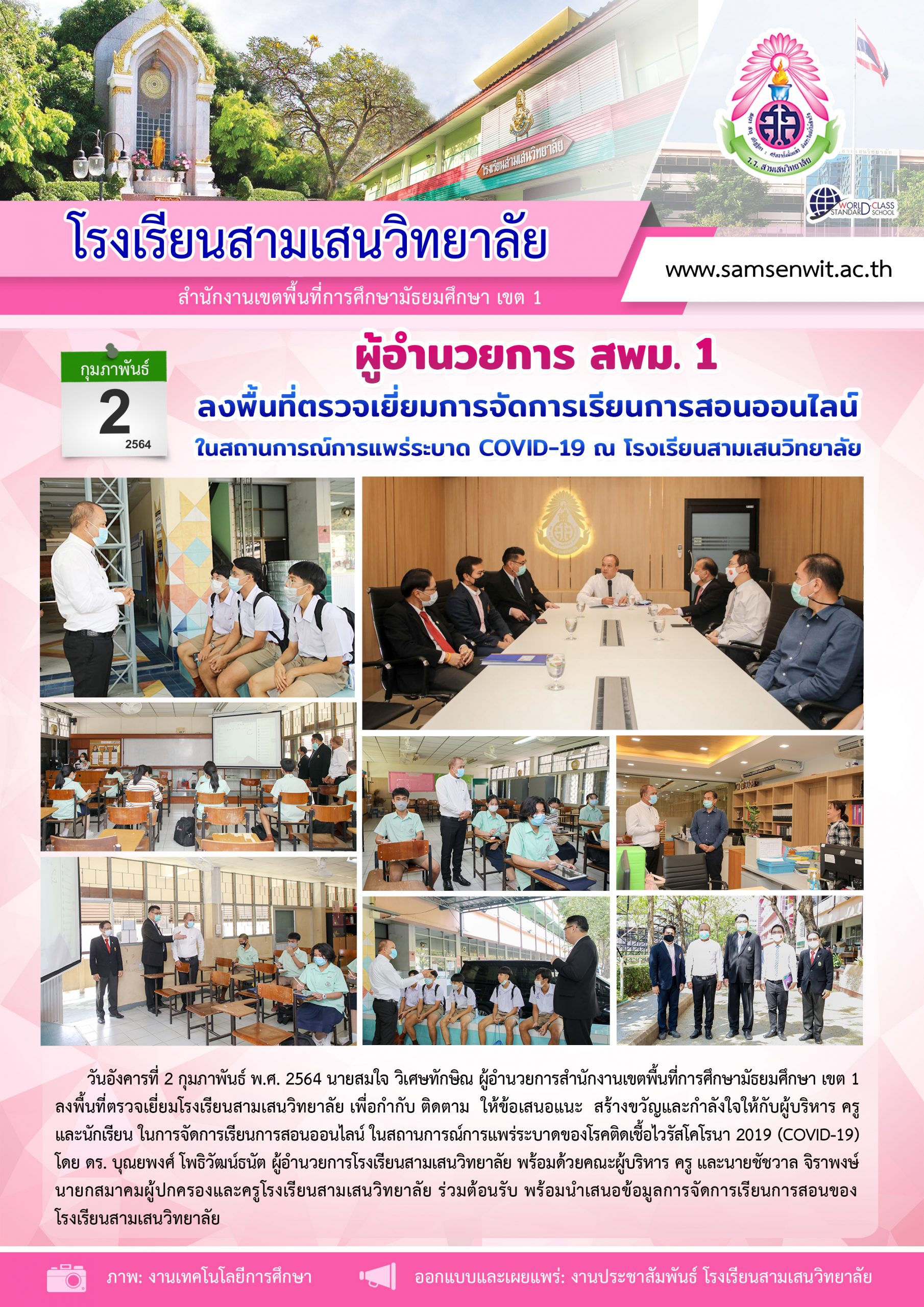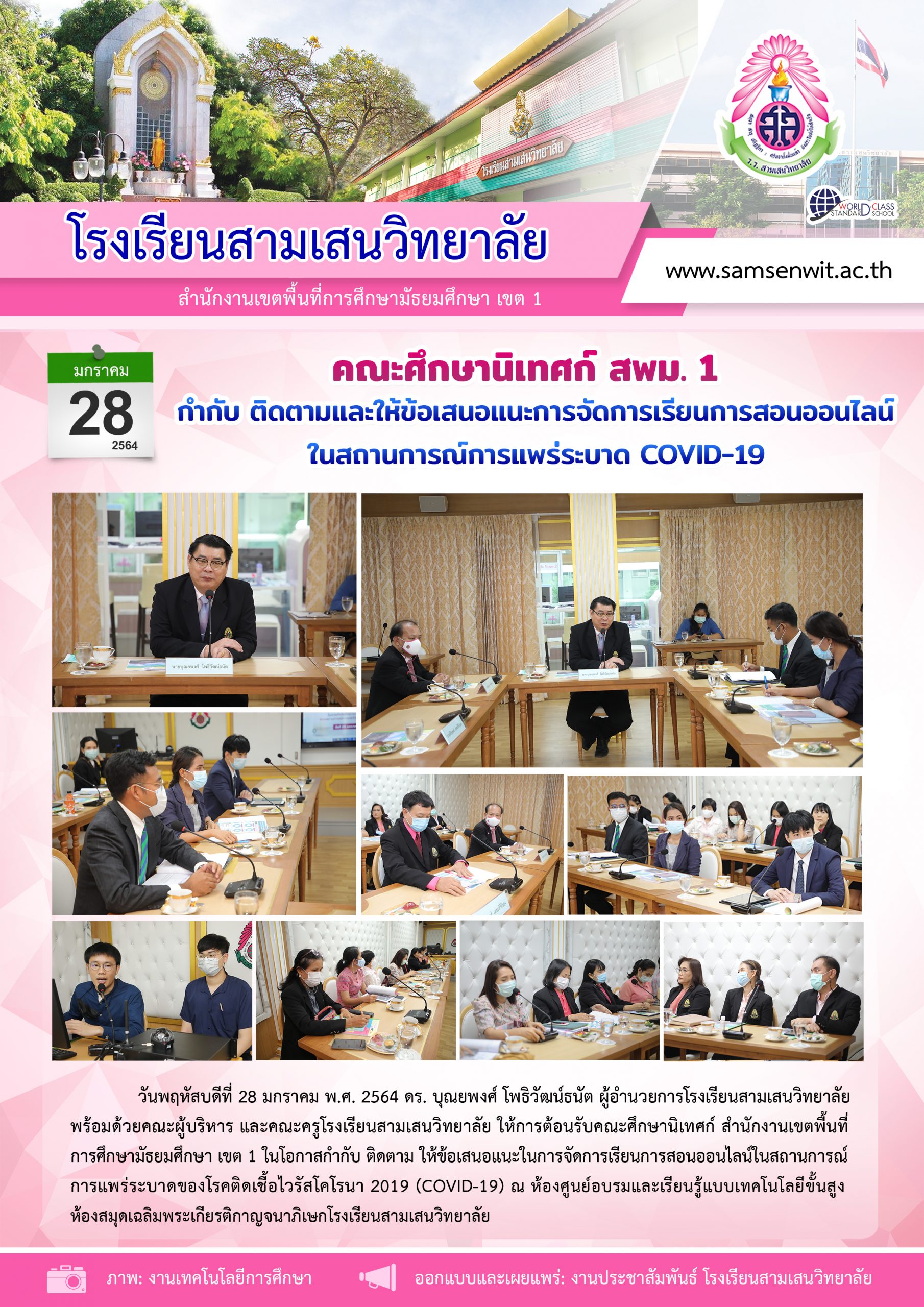 ผู้อำนวยการ สพม. 1 ลงพื้นที่ตรวจเยี่ยมการจัดการเรียนการสอนออนไลน์ในสถานการณ์การแพร่ระบาด COVID-19 ณ โรงเรียนสามเสนวิทยาลัย