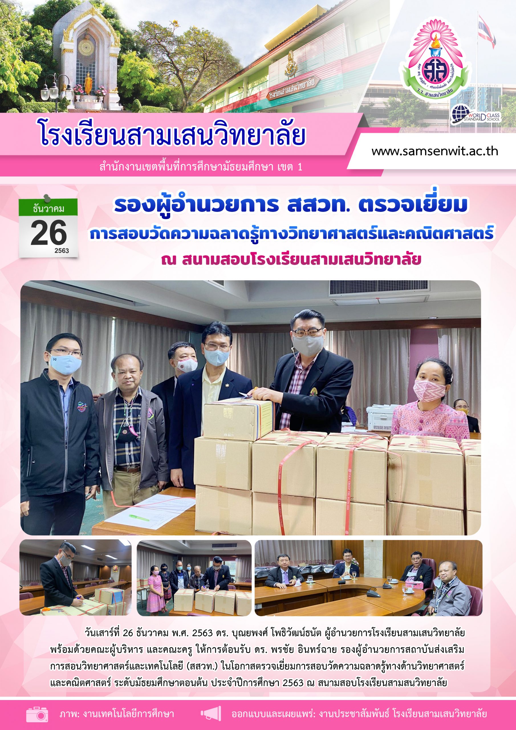 รองผู้อำนวยการ สสวท. ตรวจเยี่ยมการสอบวัดความฉลาดรู้ทางวิทยาศาสตร์และคณิตศาสตร์ ประจำปีการศึกษา 2563 ณ สนามสอบโรงเรียนสามเสนวิทยาลัย