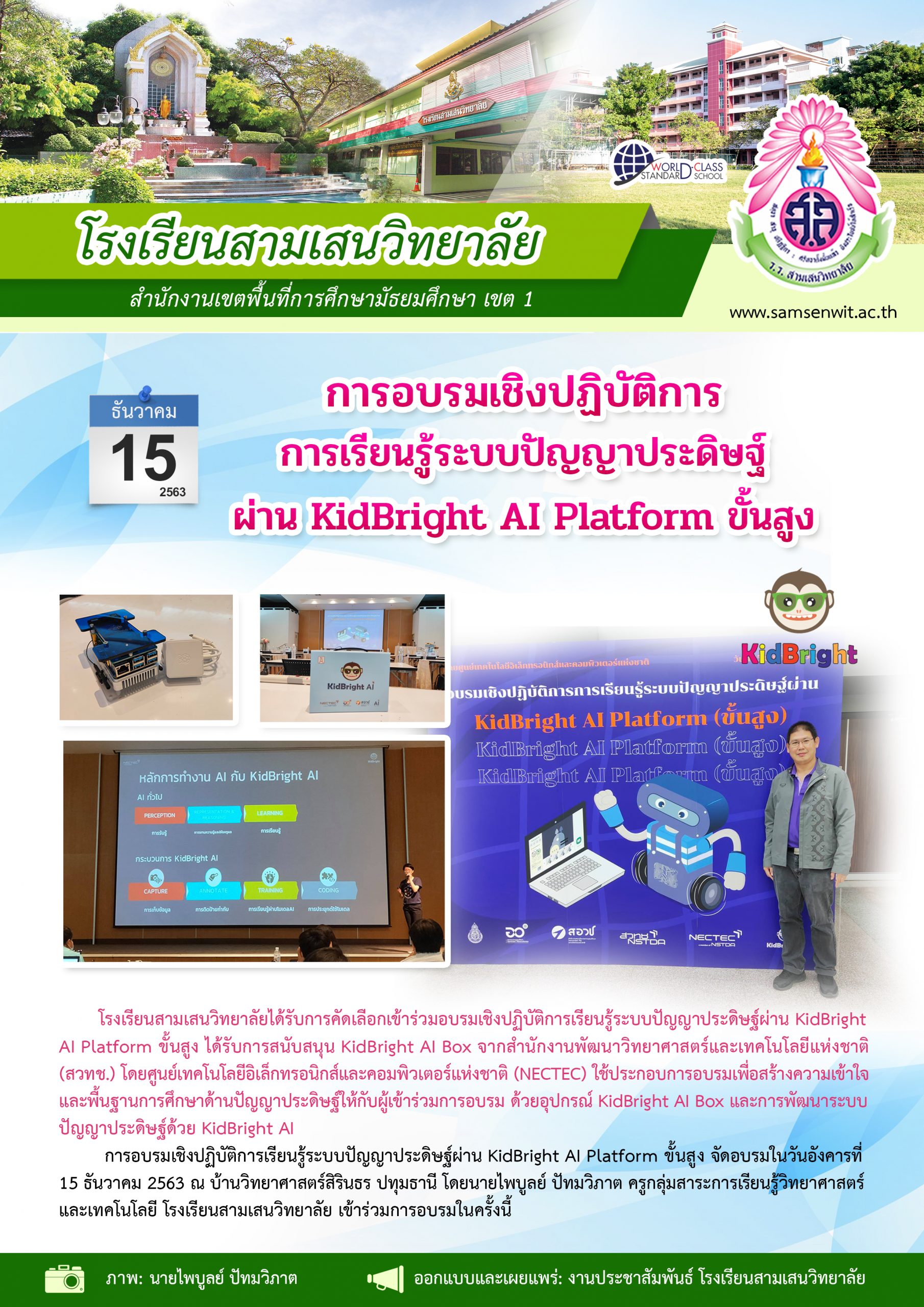 การอบรมเชิงปฏิบัติการเรียนรู้ระบบปัญญาประดิษฐ์ผ่าน KidBright AI Platform ขั้นสูง