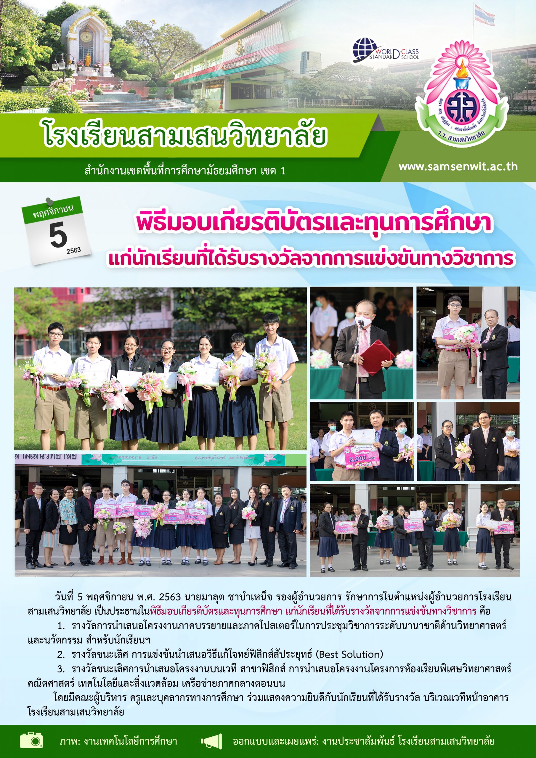 พิธีมอบเกียรติบัตรและทุนการศึกษาแก่นักเรียนที่ได้รับรางวัลจากการแข่งขันทางวิชาการ