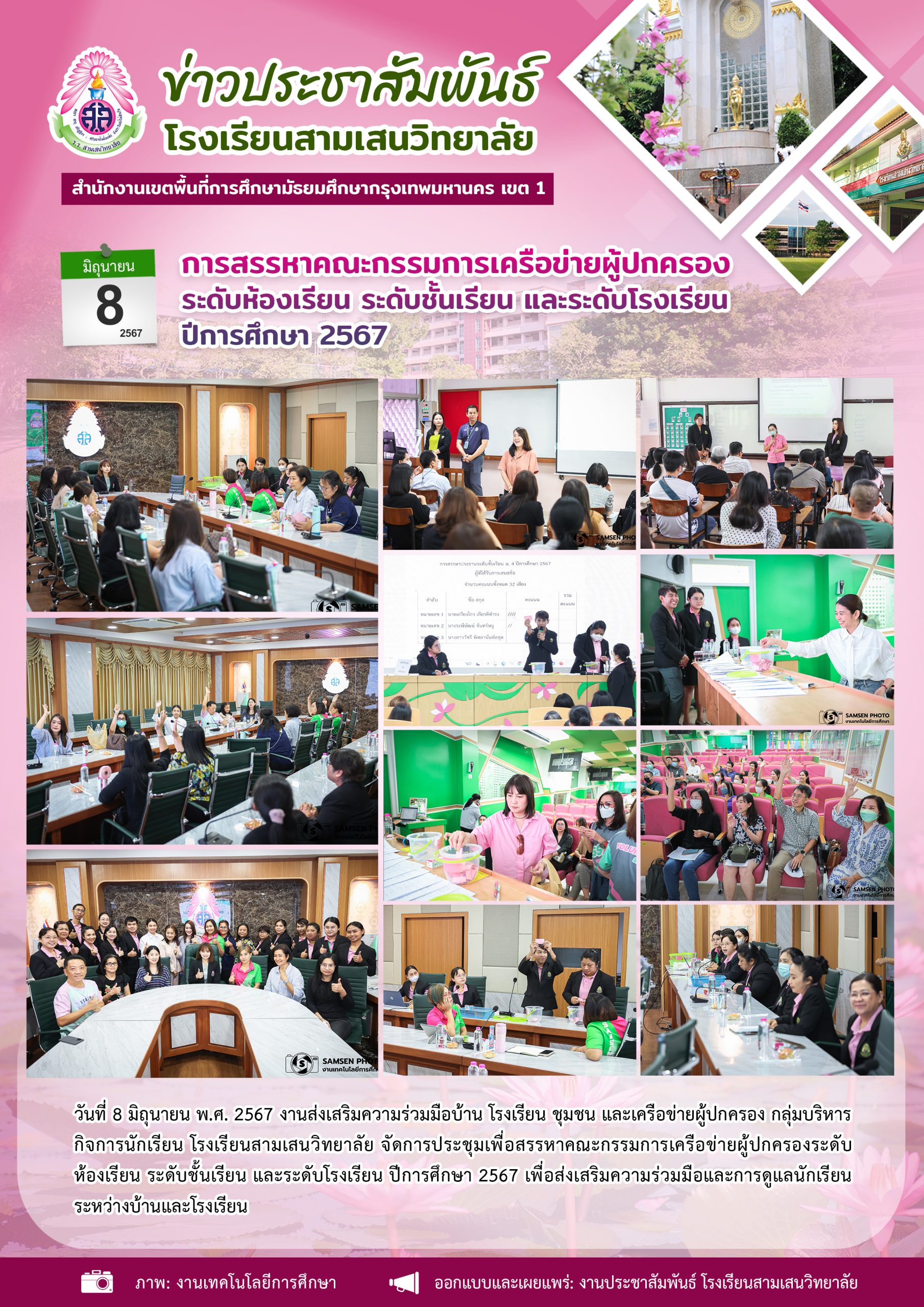 8 มิถุนายน 2567 การสรรหาคณะกรรมการเครือข่ายผู้ปกครอง ระดับห้องเรียน ระดับชั้นเรียน และระดับโรงเรียน ปีการศึกษา 2567