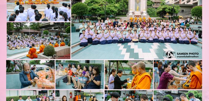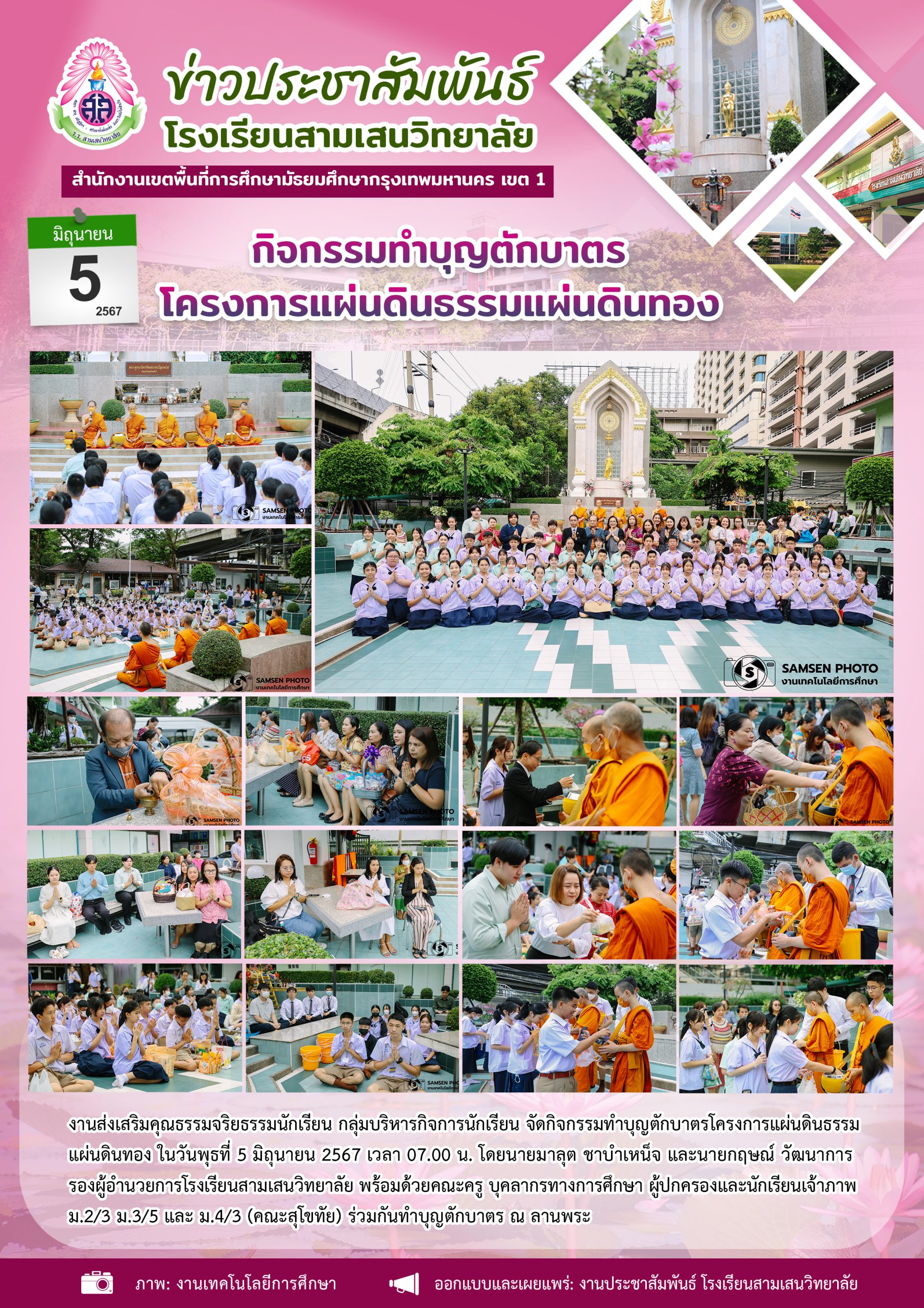 5 มิถุนายน 2567 กิจกรรมทำบุญตักบาตรเโครงการแผ่นดินธรรมแผ่นดินทอง โดย งานเสริมคุณธรรมจริยธรรมนักเรียน กลุ่มบริหารกิจการนักเรียน