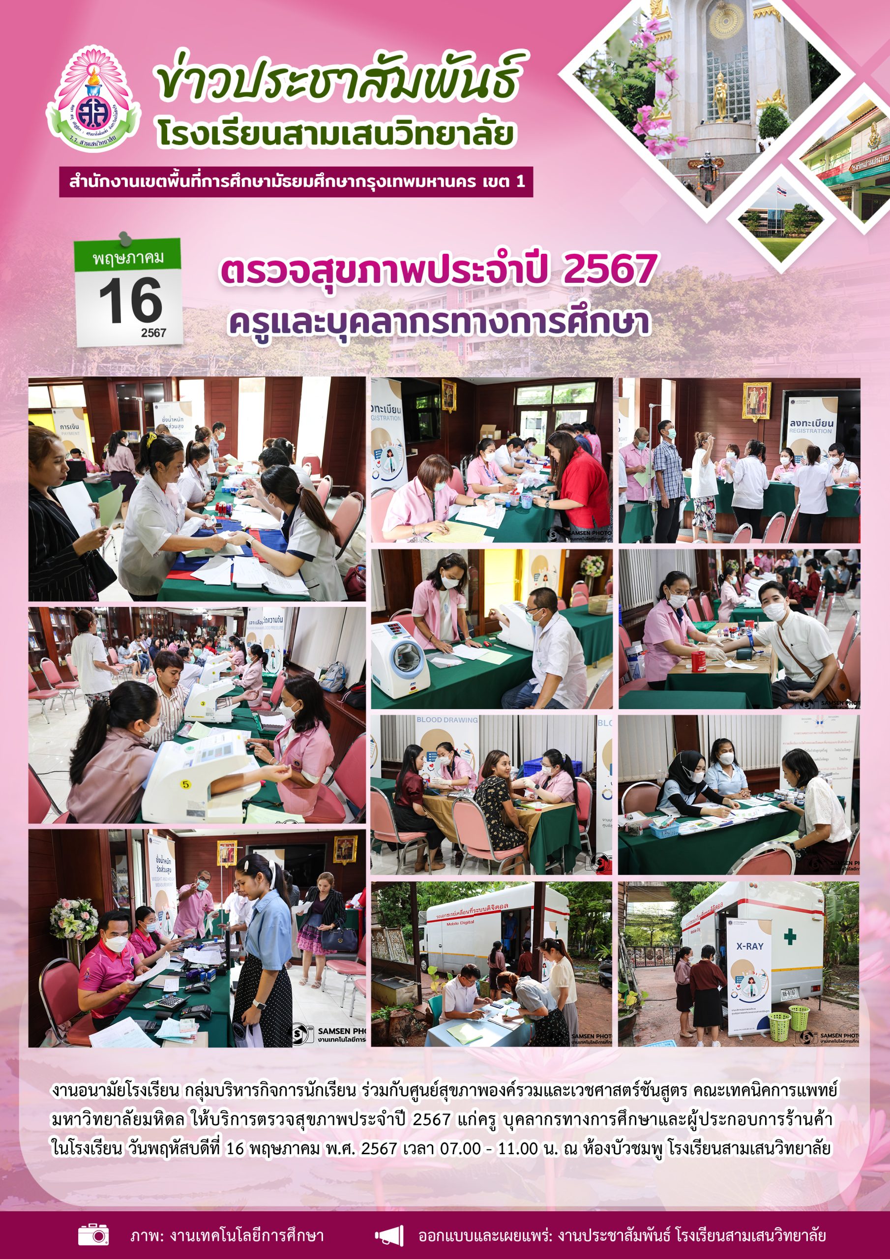 16 พฤษภาคม 2567 ตรวจสุขภาพประจำปี 2567 ครูและบุคลากรโรงเรียนนสามเสนวิทยาลัย