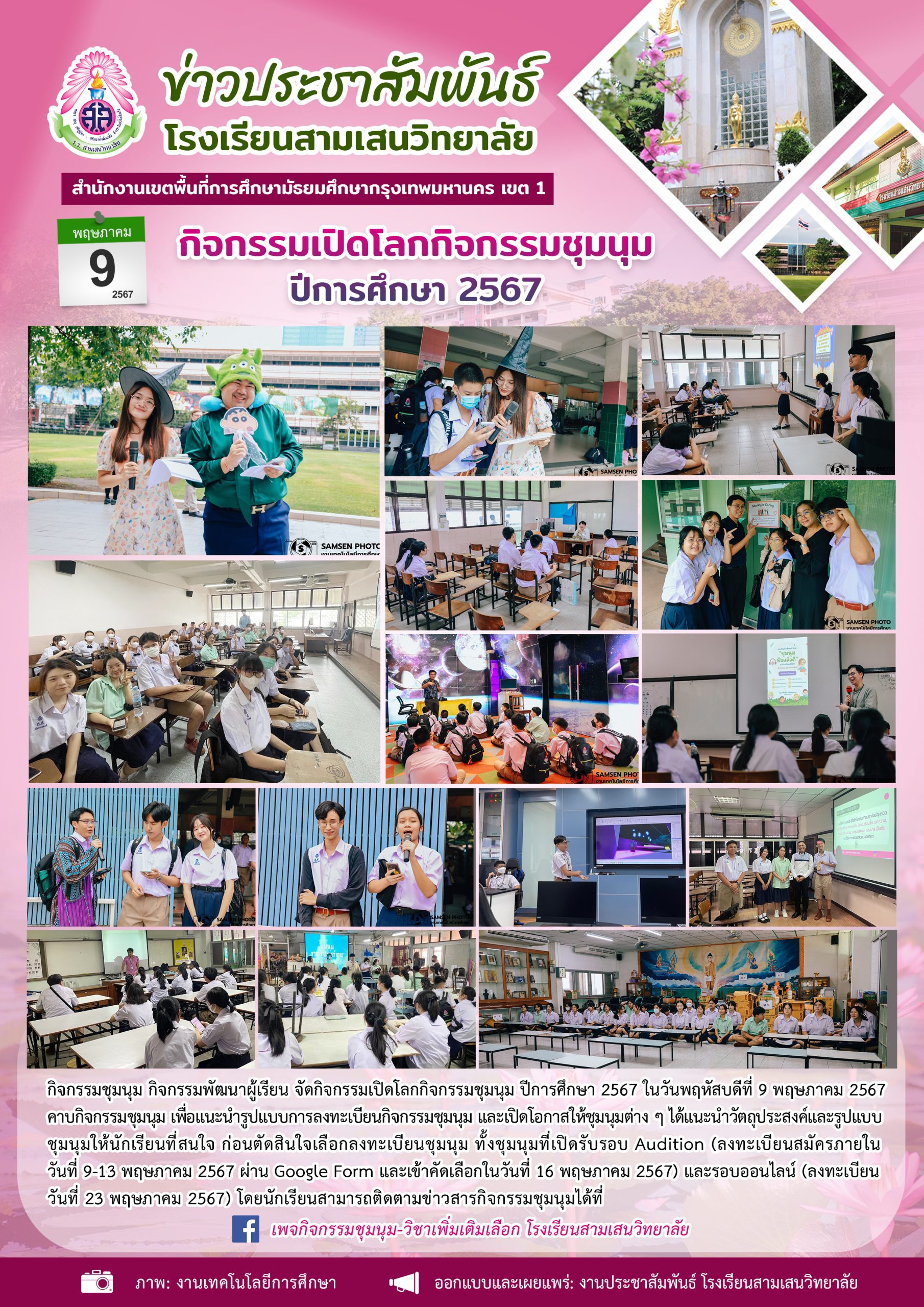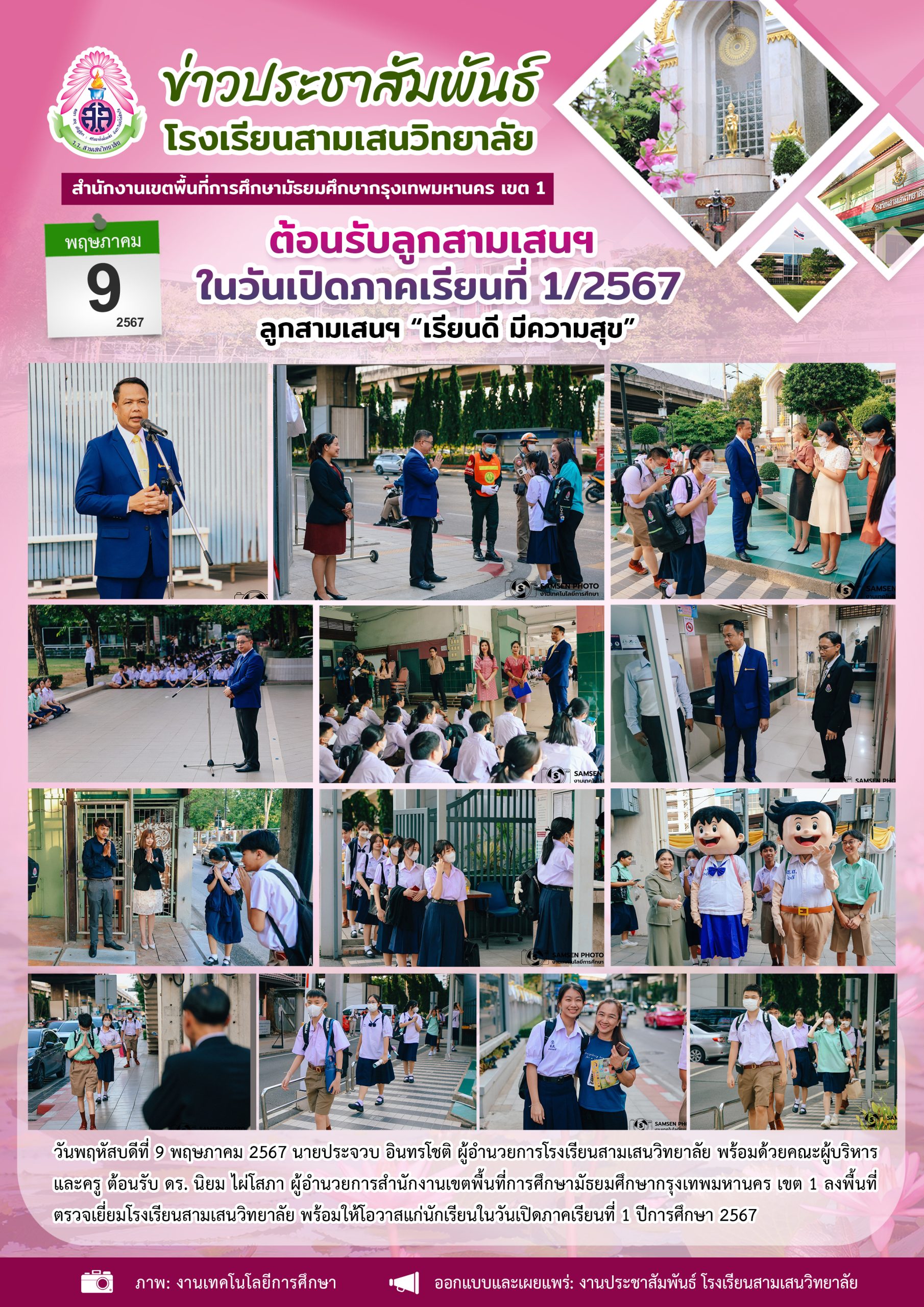 9 พฤษภาคม 2567 ต้อนรับลูกสามเสนฯ ในวันเปิดภาคเรียนที่ 1 ปีการศึกษา 2567 ลูกสามเสนฯ “เรียนดี มีความสุข”