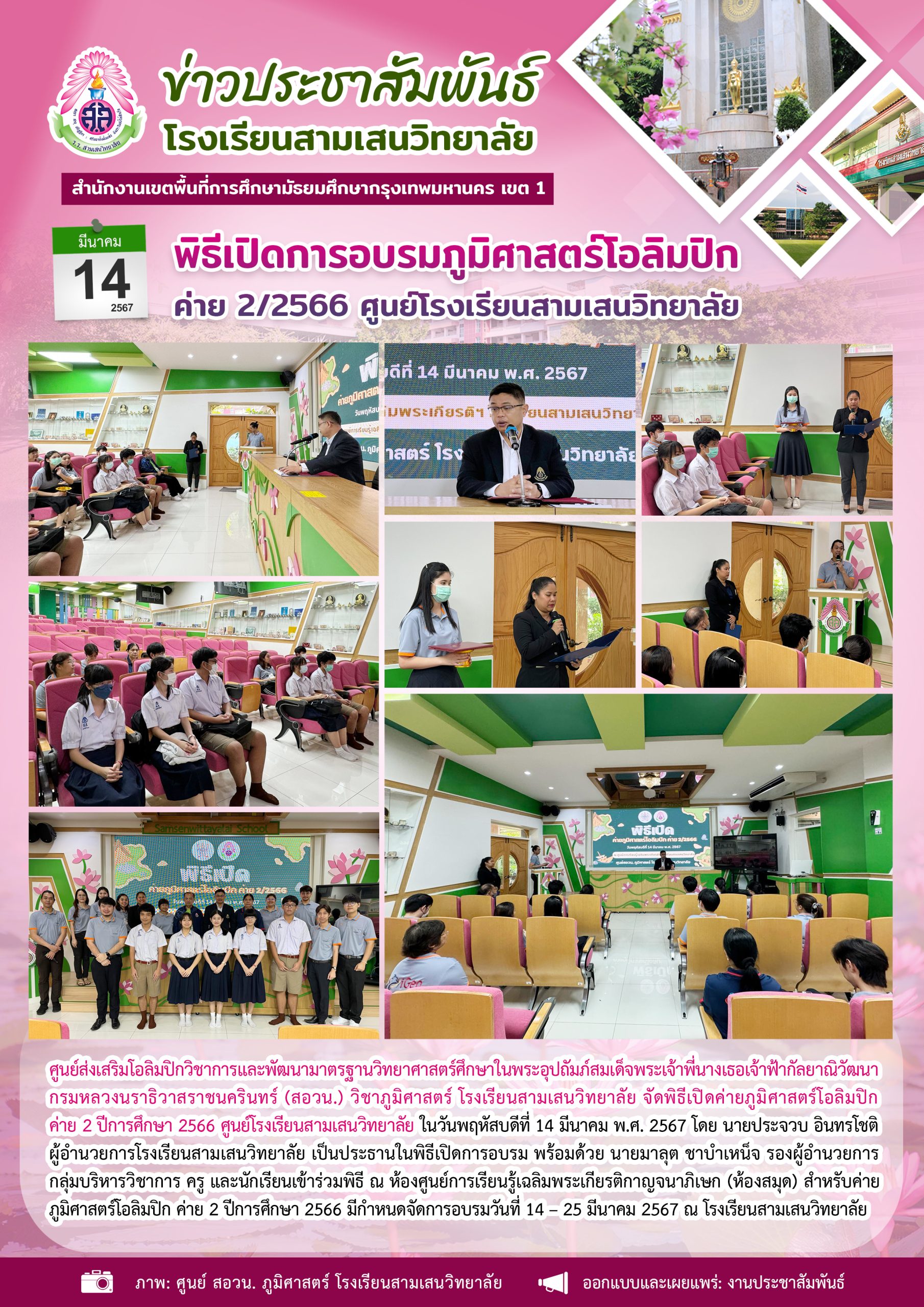 14 มีนาคม 2567 พิธีเปิดการอบรมภูมิศาสตร์โอลิมปิก ค่าย 2/2566 ศูนย์ สอวน. ภูมิศาสตร์ โรงเรียนสามเสนวิทยาลัย