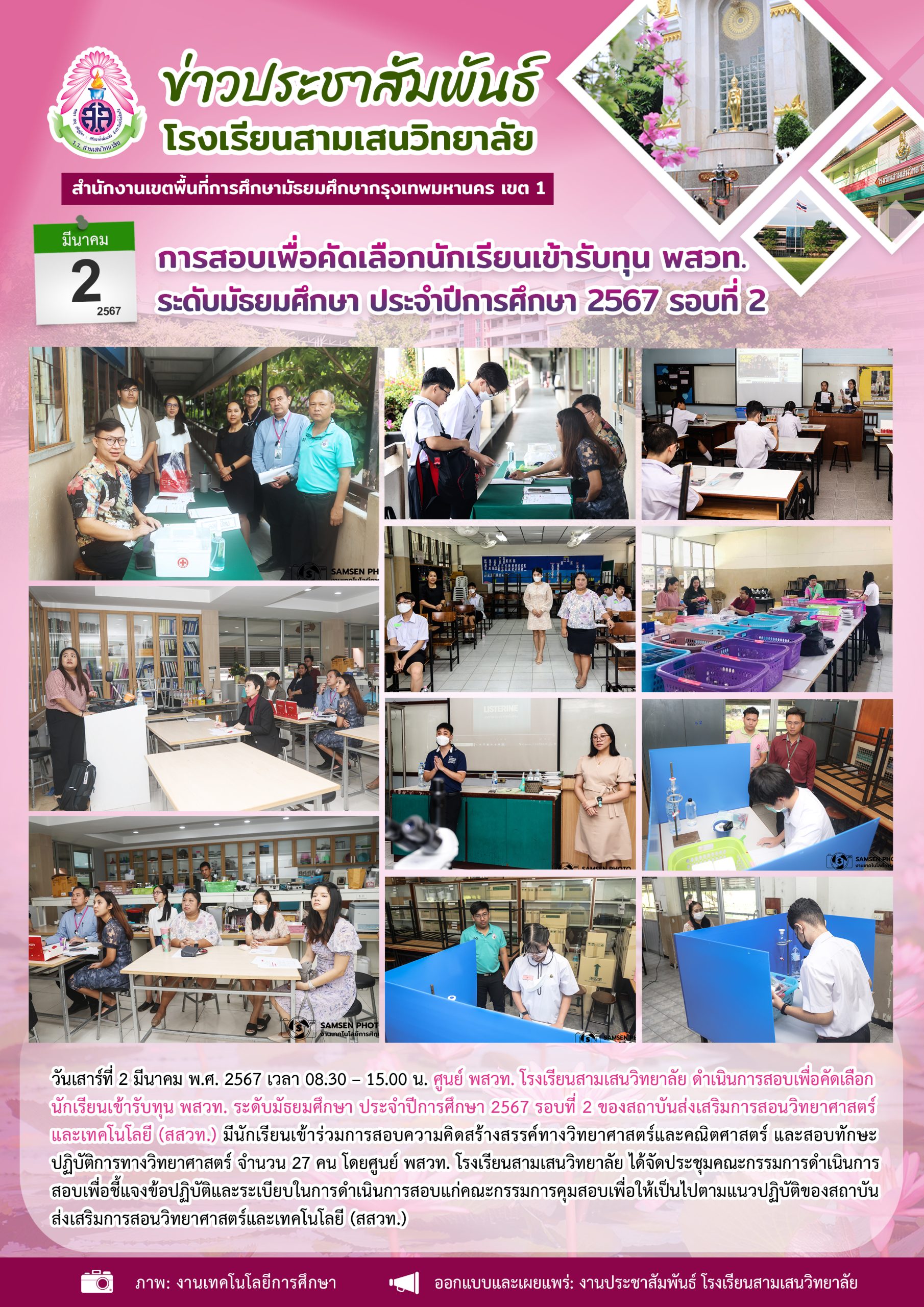 2 มีนาคม 2567 การสอบเพื่อคัดเลือกนักเรียนเข้ารับทุน พสวท. ระดับมัธยมศึกษา ประจำปีการศึกษา 2567 รอบที่ 2 3