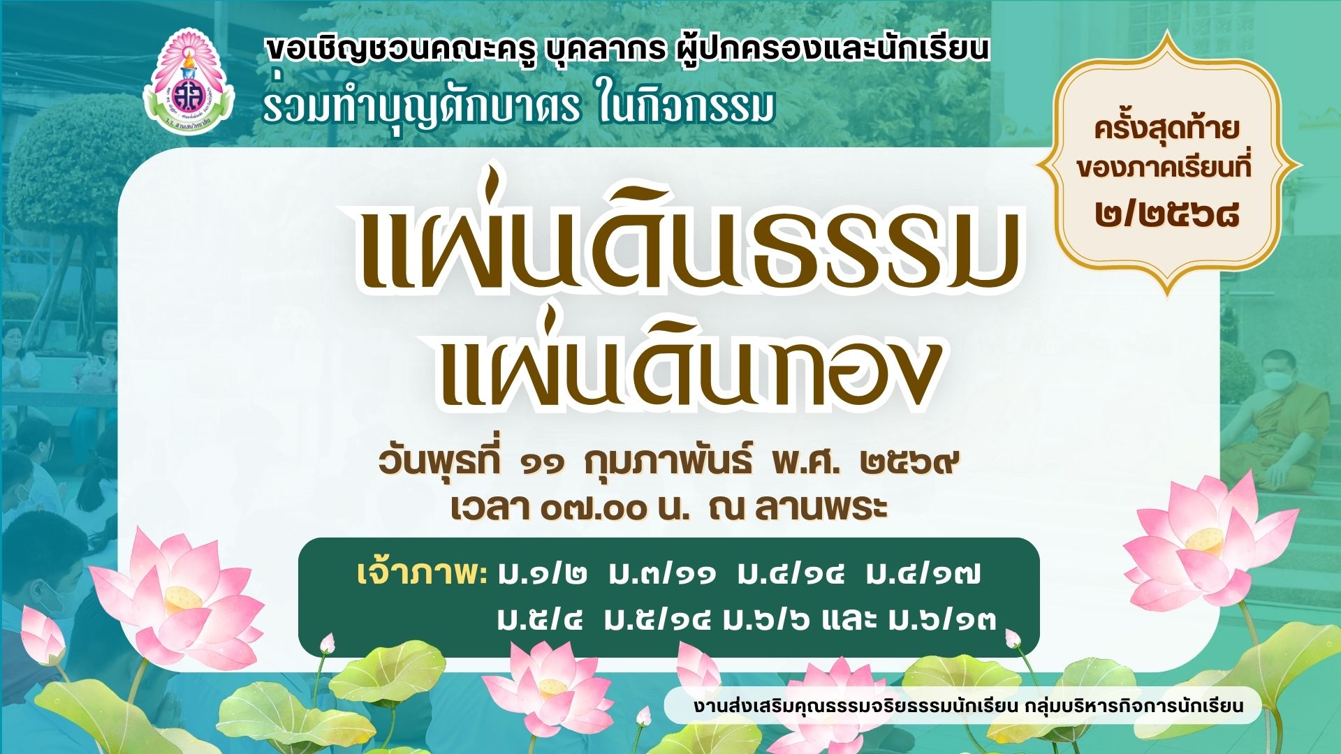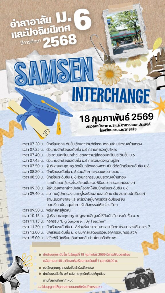 ตามที่ งานส่งเสริมวินัยนักเรียน กลุ่มบริหารกิจการนักเรียน ได้กำหนดให้นักเรียนที่เข้าร่วมเป็นคณะกรรมการจัดกิจกรรมสามเสนนิทรรศน์ 2026 ในวันที่ 29 – 31 มกราคม 2569 สามารถนำชั่วโมงกิจกรรม มาใช้เป็นกิจกรรมเพื่อปรับแก้ไขคะแนนความประพฤติได้นั้น