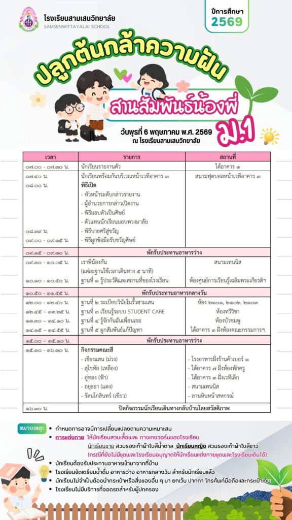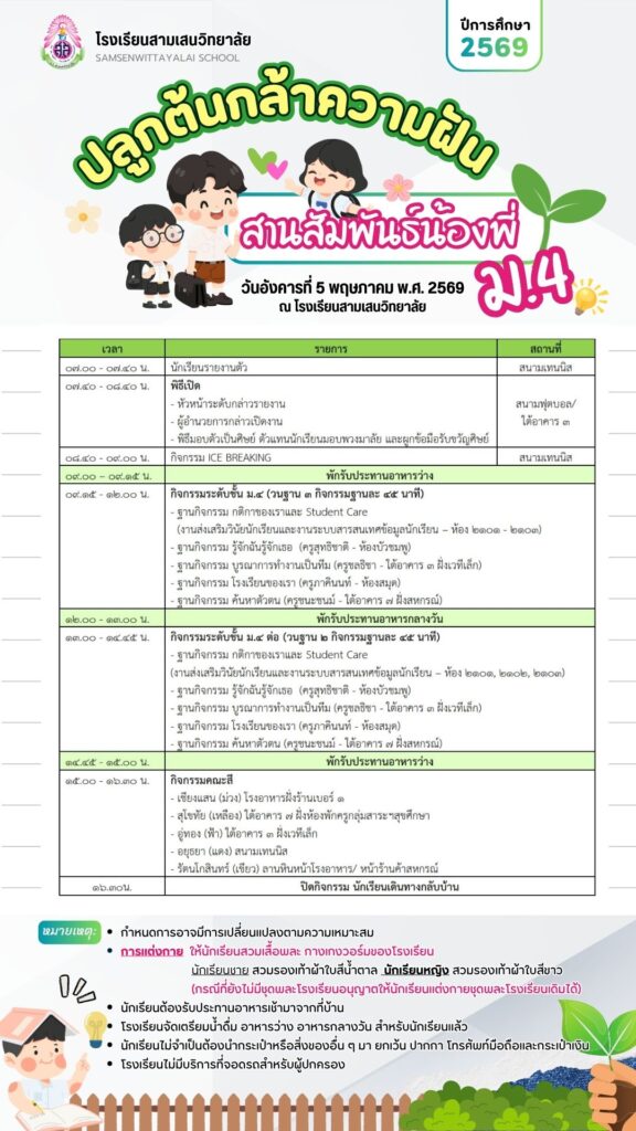 🚩 รายชื่อและห้องสอบ: แจ้งผ่านคณะกรรมการนักเรียน ภายในวันที่ 29 เมษายน 2569