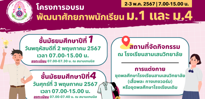 ✅รายชื่อนักเรียนเตรียมความพร้อม ม.4 (อัปเดต 24 เม.ย. 67)