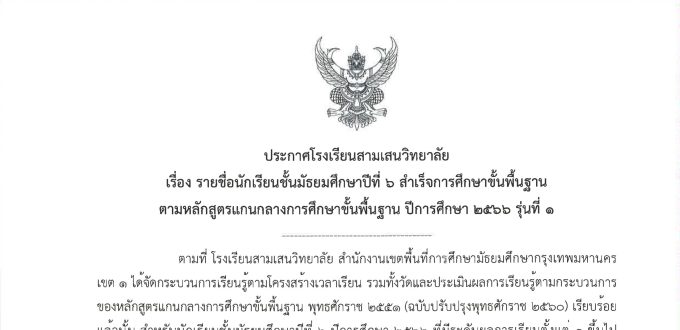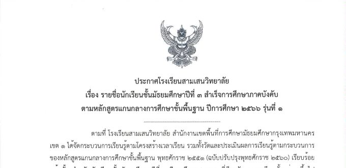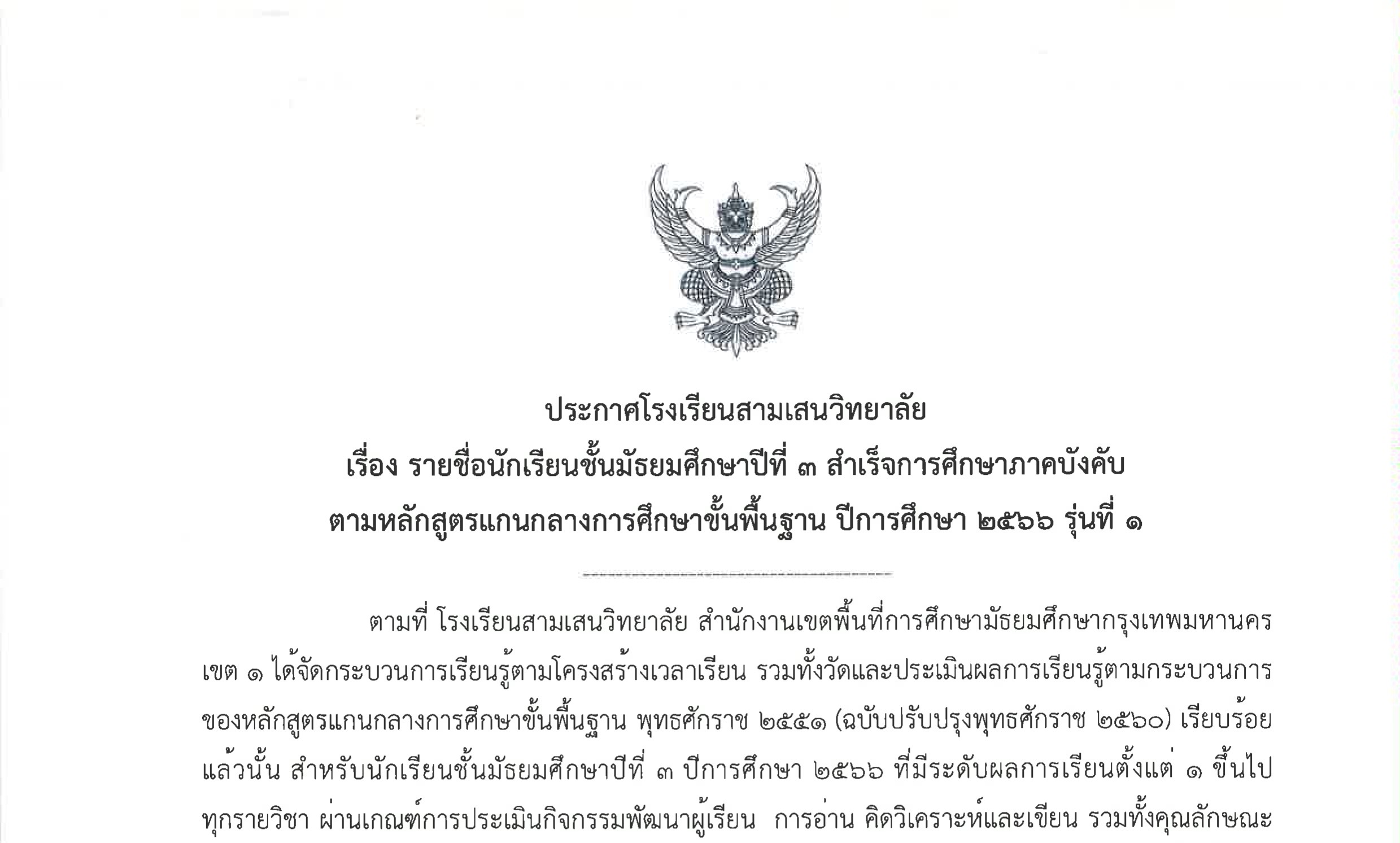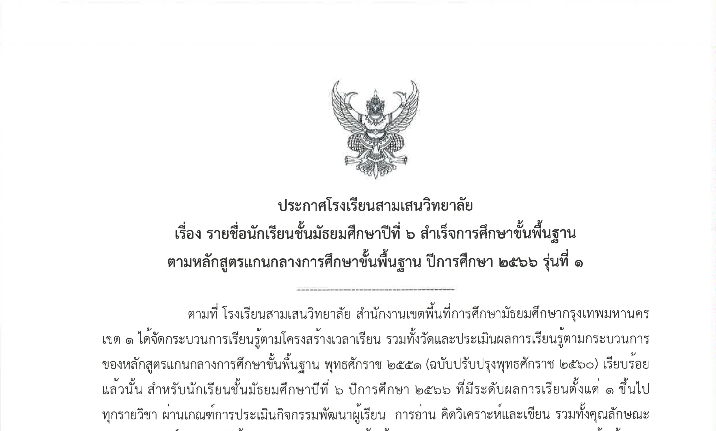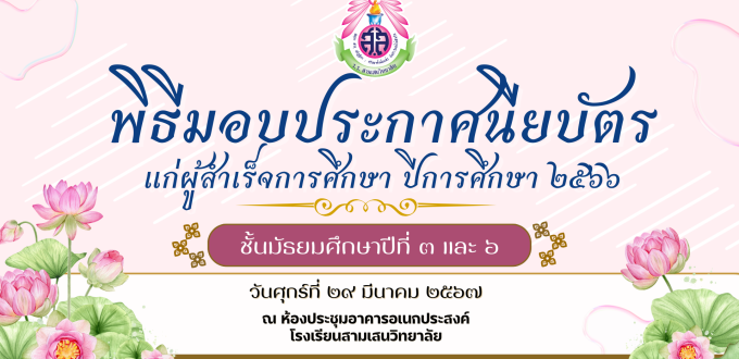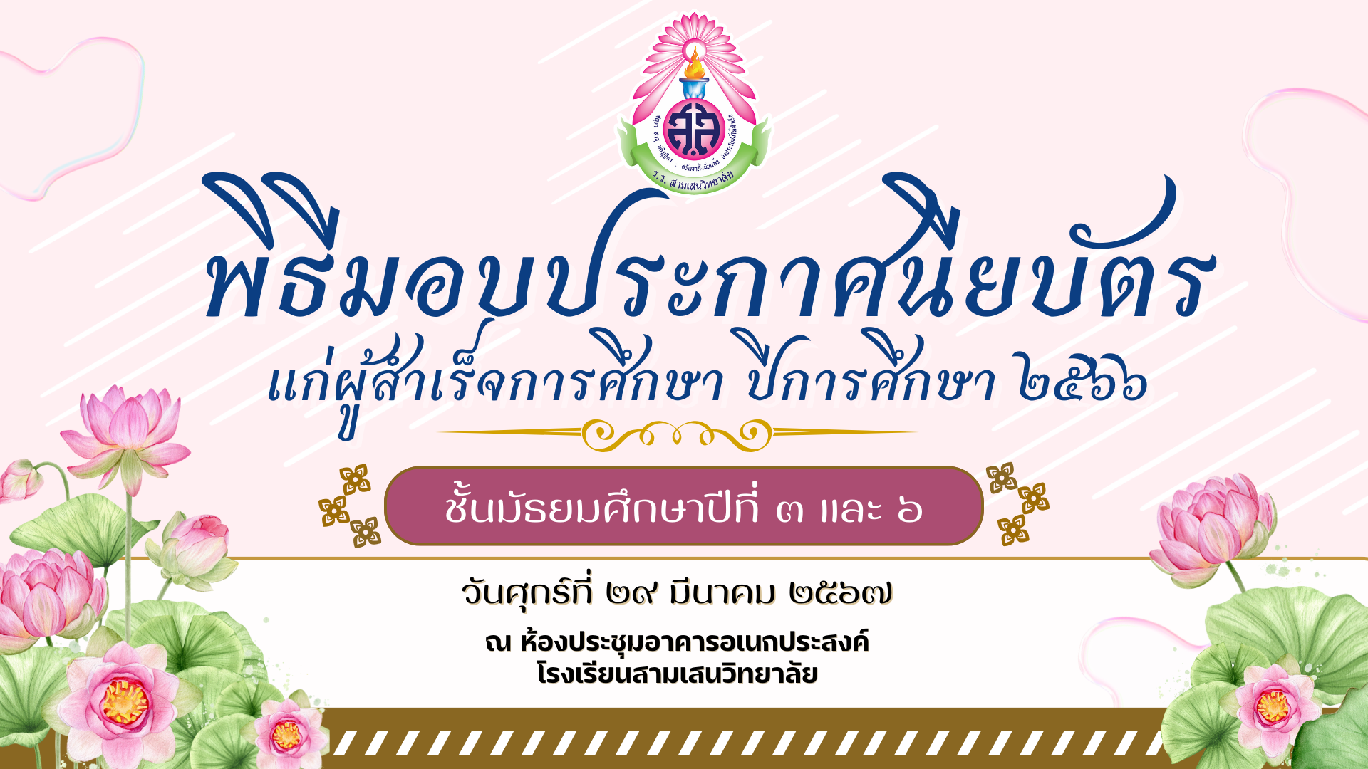 พิธีมอบประกาศนียบัตรแก่ผู้สำเร็จการศึกษา ปีการศึกษา ๒๕๖๖ ชั้นมัธยมศึกษาปีที่ ๓ และ ๖ วันศุกร์ที่ ๒๙ มีนาคม ๒๕๖๗ ณ ห้องประชุมอาคารอเนกประสงค์ โรงเรียนสามเสนวิทยาลัย