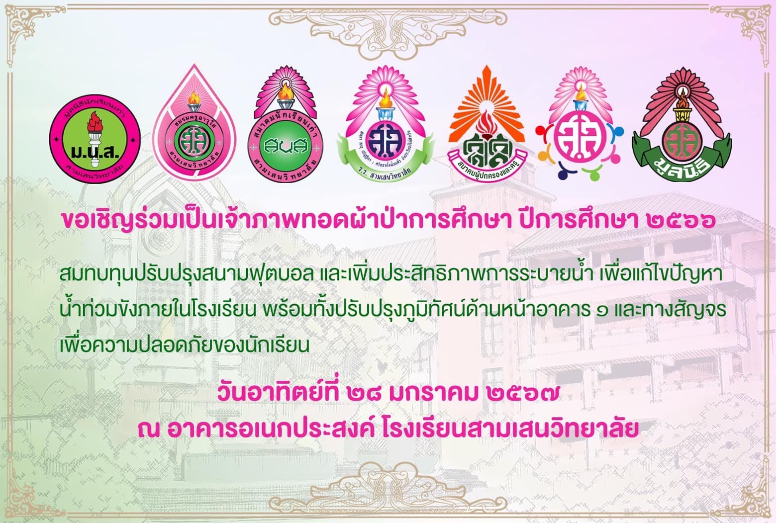 – เวลา 09.00 น. ตั้งองค์ผ้าป่า ณ อาคารอเนกประสงค์ โรงเรียนสามเสนวิทยาลัย