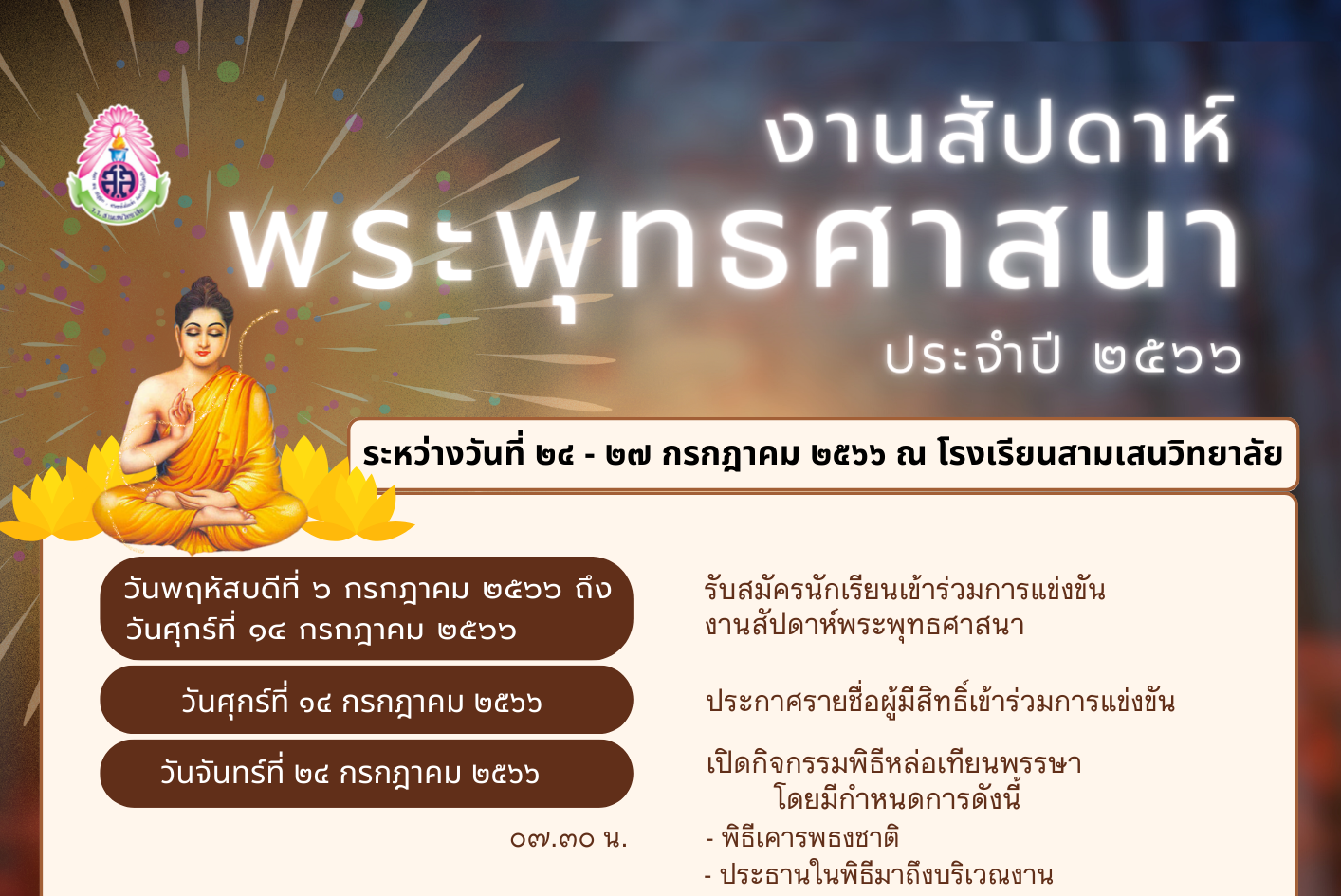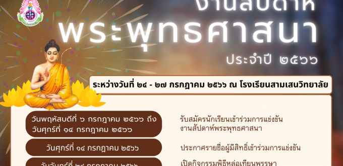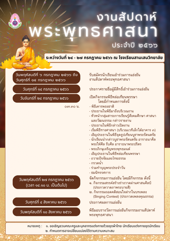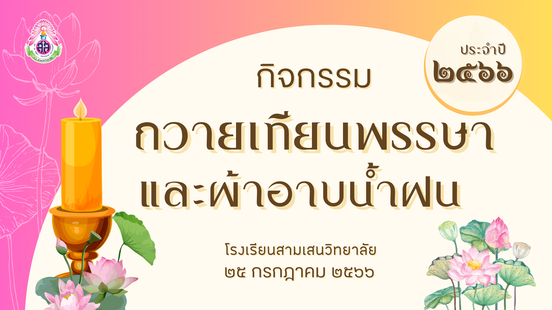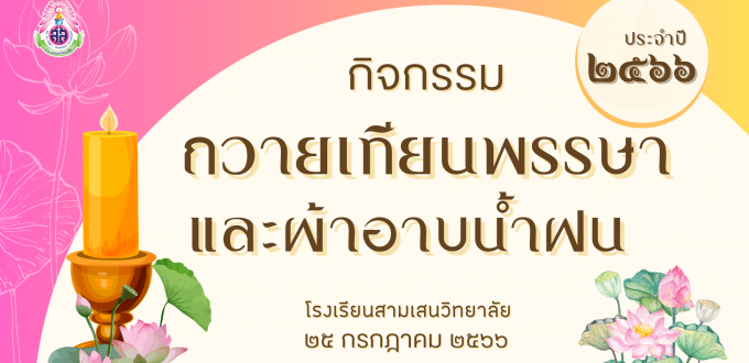 กำหนดการกิจกรรมถวายเทียนพรรษาและผ้าอาบน้ำฝน ประจำปี 2566 โรงเรียนสามเสนวิทยาลัย วันที่ 25 กรกฎาคม 2566