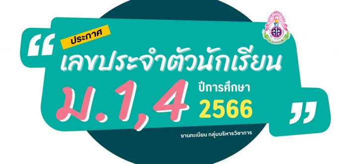 ประกาศเลขประจำตัวนักเรียนชั้นมัธยมศึกษาปีที่ 1 และ 4 ปีการศึกษา 2566 (ม.1, ม.4 อัปเดต ณ วันที่ 6 มิถุนายน 2566)