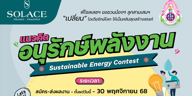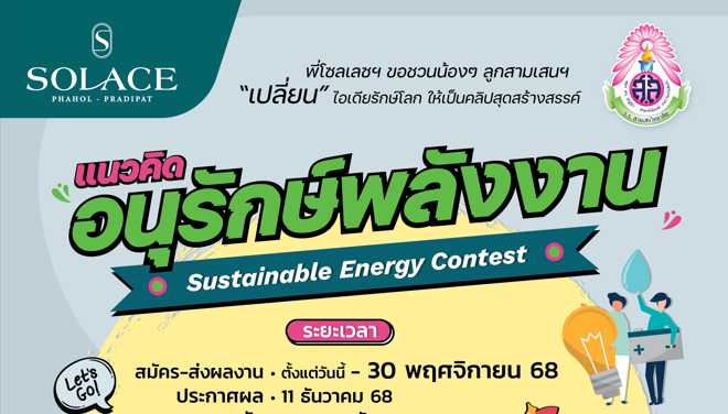 งานอนุรักษ์พลังงานและสิ่งแวดล้อม ร่วมกับ โครงการโซลเลซ พหลฯ-ประดิพัทธ์ ขอเชิญชวนลูกสามเสนฯ “เปลี่ยน” ไอเดียรักษ์โลก เป็นคลิป “แนวคิดอนุรักษ์พลังงาน” • เปิดรับสมัครตั้งแต่วันนี้ – 30 พฤศจิกายน 2568