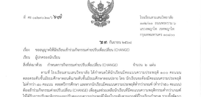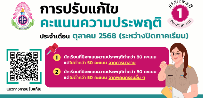 📌 ส่งแบบรายงานการขอปรับแก้ไขคะแนนความประพฤติ (กจ 2- 6) ภายในวันที่ 3 พฤศจิกายน 2568