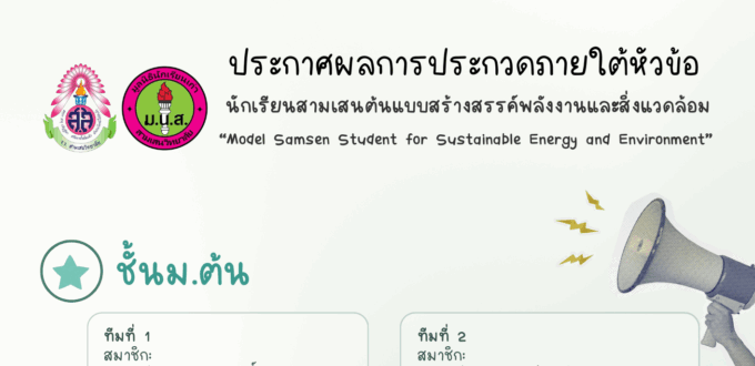 ♻️🌳ประกาศผลการประกวดภายใต้หัวข้อ “นักเรียนสามเสนต้นแบบสร้างสรรค์พลังงานและสิ่งแวดล้อม” Model Samsen Student for Sustainable Energy and Environment” 🌎🔌