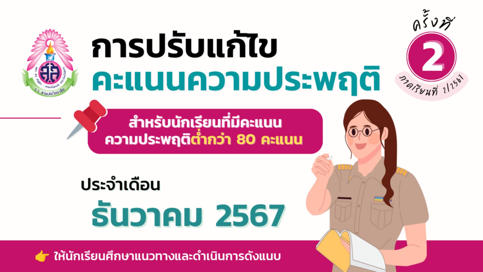 🚩กิจกรรมการปรับแก้ไขคะแนนความประพฤติสำหรับนักเรียนที่มีคะแนนความประพฤติต่ำกว่า 80 คะแนน ครั้งที่ 2 ภาคเรียนที่ 2 ปีการศึกษา 2567 ประจำเดือน ธันวาคม 2567