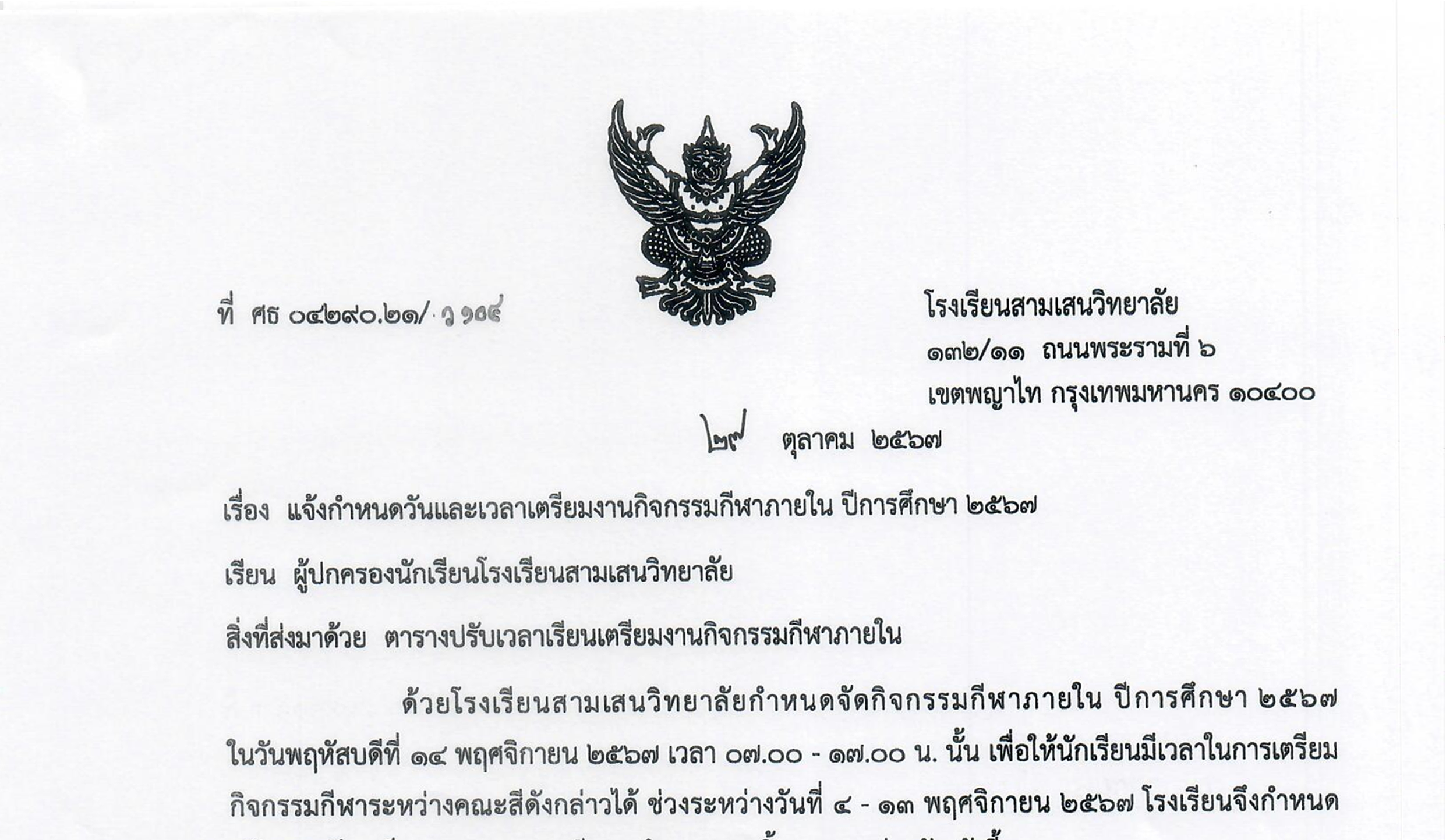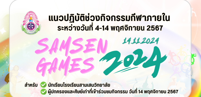 ประกาศโรงเรียนสามเสนวิทยาลัย เรื่อง แนวทางการดำเนินงานและมาตรการรักษาความปลอดภัยในการจัดการแข่งขันกีฬาภายใน “SAMSEN GAMES 2024” 📥 แนวทางการดำเนินงานและมาตรการฯ SAMSEN GAMES 2024