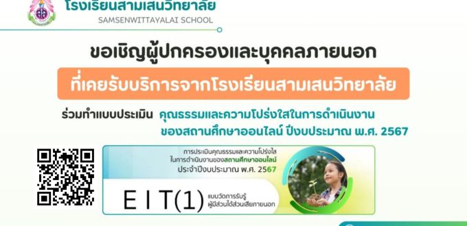 📣ขอเชิญผู้ปกครอง และบุคคลภายนอกที่เคยรับบริการจากโรงเรียนสามเสนวิทยาลัย ร่วมทำแบบประเมินคุณธรรมและความโปร่งใสในการดำเนินงานของสถานศึกษาออนไลน์ ปีงบประมาณ พ.ศ. 2567