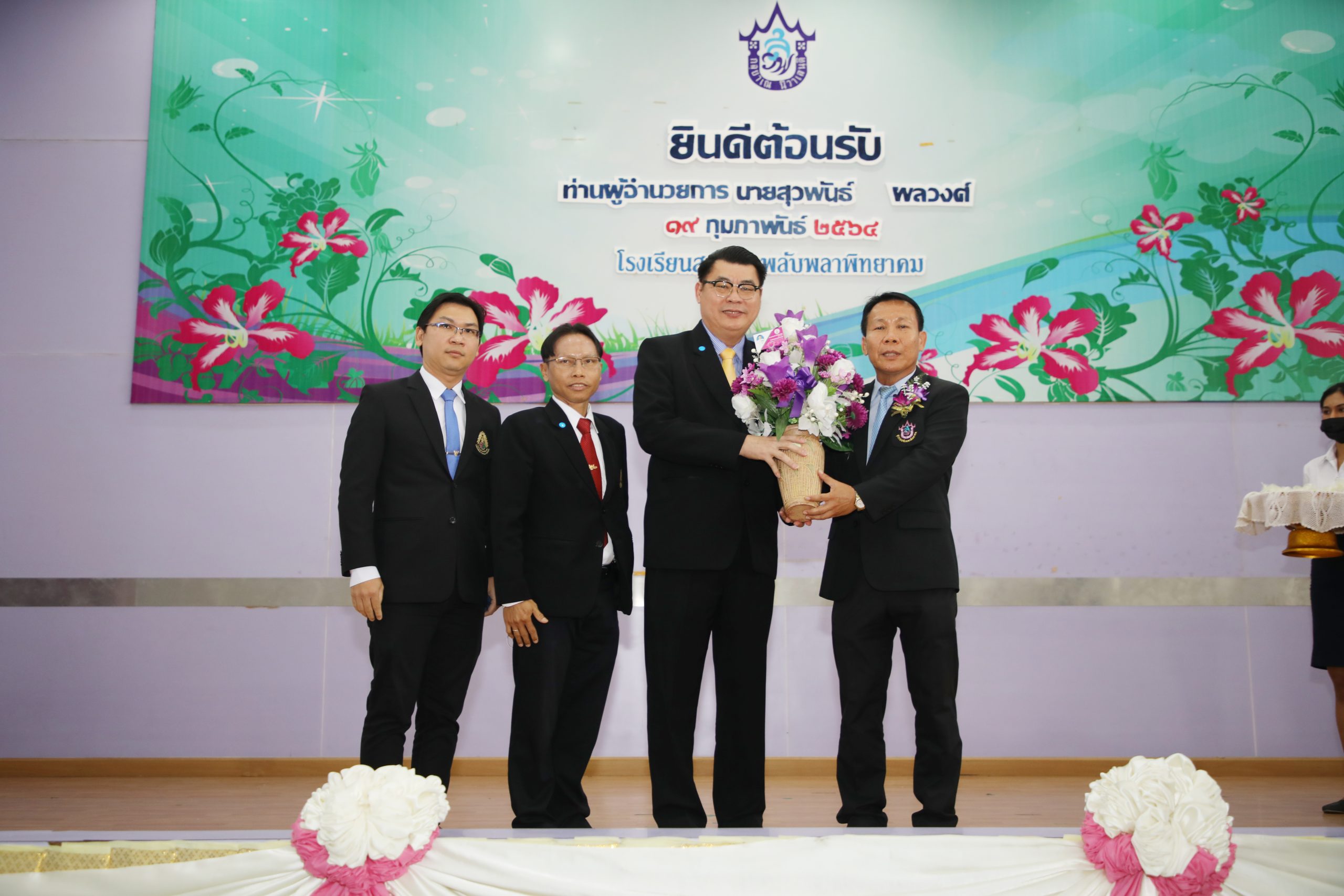 ดร. บุณยพงศ์ โพธิวัฒน์ธนัต ผู้อำนวยการโรงเรียนสามเสนวิทยาลัย และคณะผู้บริหาร ร่วมแสดงความยินดีกับ ว่าทีร้อยตรีสุวพันธ์ ผลวงศ์ ในโอกาสเข้ารับตำแหน่งผู้อำนวยการโรงเรียนสุวรรณพลับพลาพิทยาคม