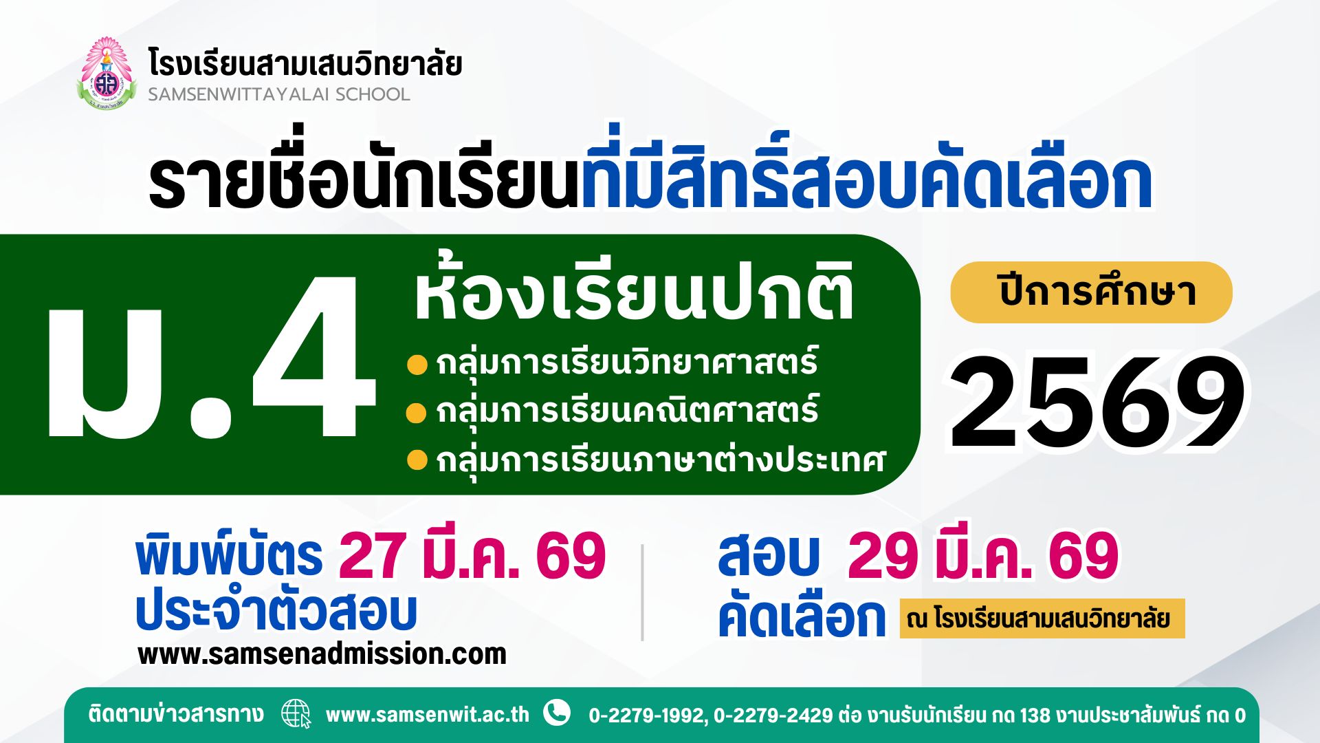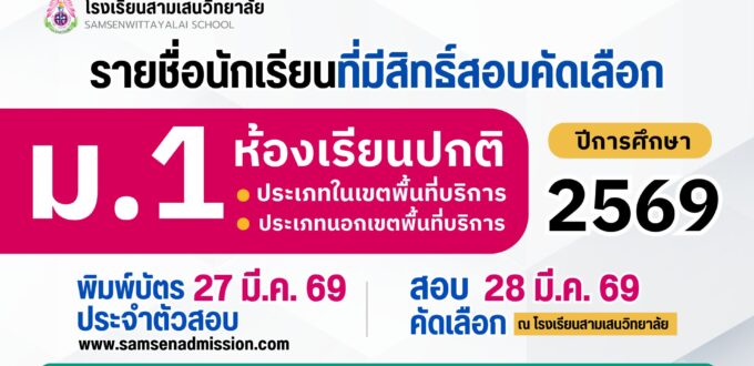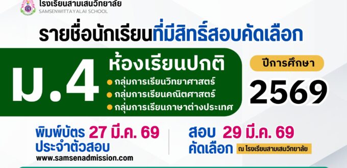 📥 ประกาศเรียกนักเรียนแทนผู้สละสิทธิ์เข้าศึกษาต่อระดับชั้นมัธยมศึกษาปีที่ 4 ปีการศึกษา 2569 ห้องเรียนพิเศษภายใน IMP และ EIS ครั้งที่ 3
