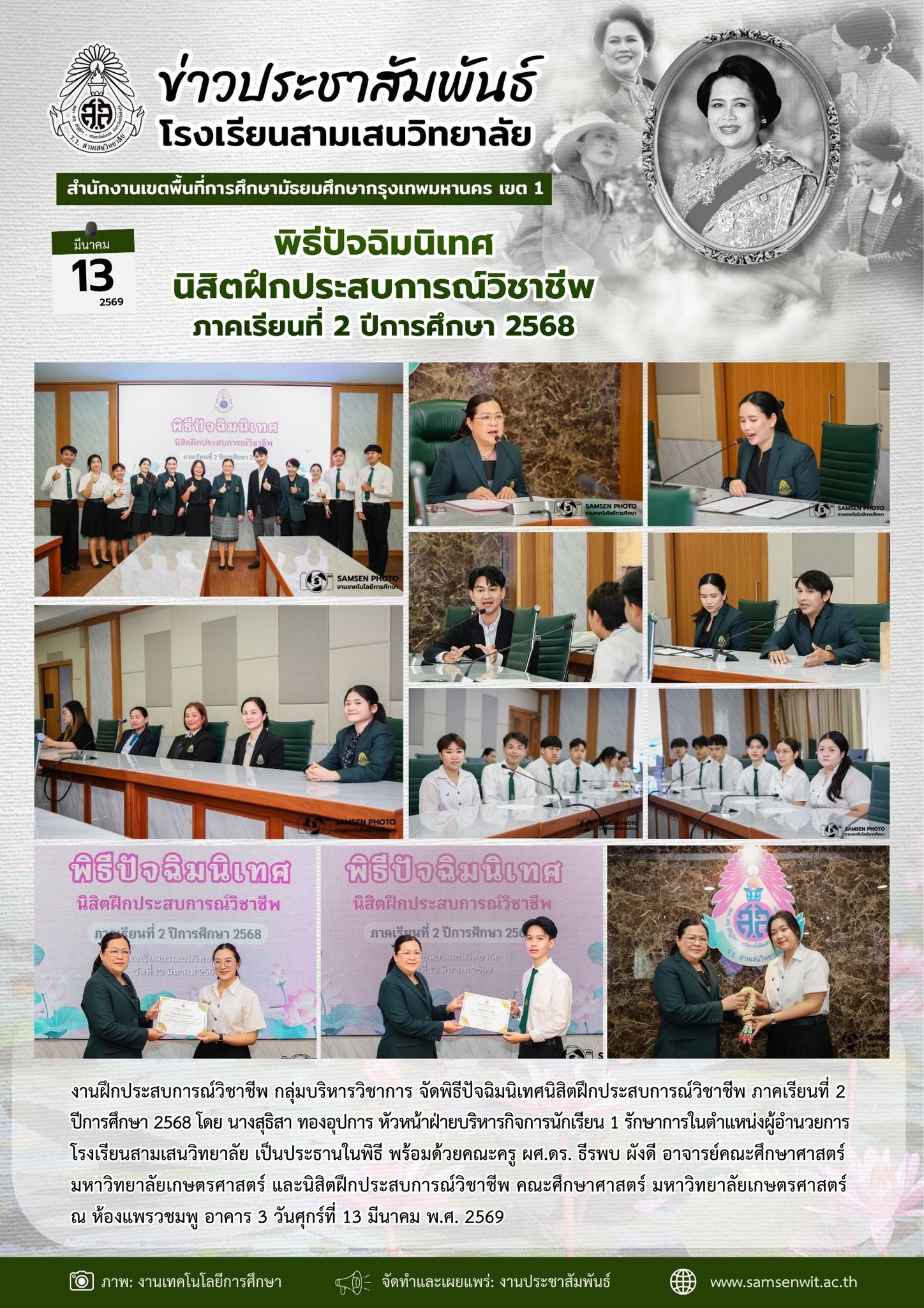 10 มีนาคม 2569 พิธีปฐมนิเทศค่ายโอลิมปิกวิชาการ สอวน. วิชาดาราศาสตร์ และภูมิศาสตร์ ค่าย 2 ปีการศึกษา 2568 ศูนย์โรงเรียนสามเสนวิทยาลัย