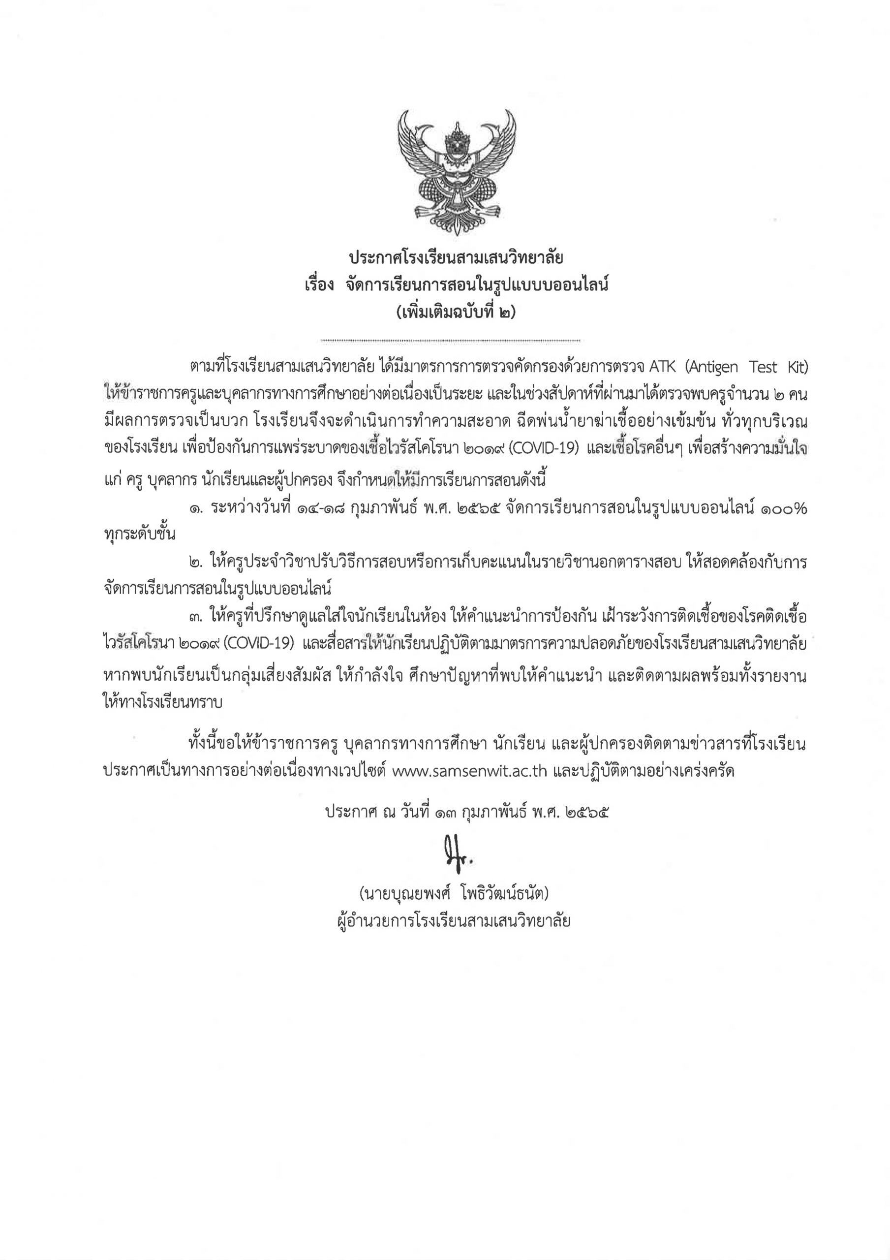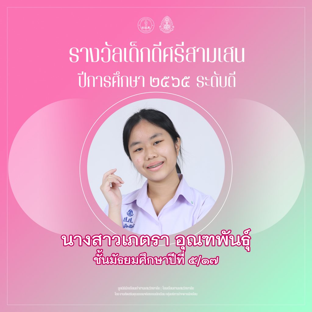 ประกาศคณะกรรมการตัดสินผลงานนักเรียน เรื่อง ผลการคัดเลือกนักเรียน รางวัล เด็กดีศรีสามเสน ปีการศึกษา ๒๕๖๕