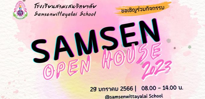โรงเรียนสามเสนวิทยาลัย ขอเชิญผู้ปกครองและนักเรียน ร่วมกิจกรรม SAMSEN Open House 2023 ในวันอาทิตย์ที่ 29 มกราคม พ.ศ. 2566 เวลา 08.00-14.00 น. ณ โรงเรียนสามเสนวิทยาลัย โรงเรียนสามเสนวิทยาลัย ขอเชิญผู้ปกครองและนักเรียน ร่วมกิจกรรม SAMSEN Open House 2023 ในวันอาทิตย์ที่ 29 มกราคม พ.ศ. 2566 เวลา 08.00-14.00 น. ณ โรงเรียนสามเสนวิทยาลัย . พบกับกิจกรรม การบรรยายโครงสร้างหลักสูตรสถานศึกษา การจัดการเรียนการสอนของโรงเรียน และการรับนักเรียน ปีการศึกษา 2566 เสวนาทางวิชาการ นิทรรศการผลงานนักเรียนโดยกลุ่มบริหาร/กลุ่มสาระฯ/English Program เยี่ยมชมสถานที่ภายในโรงเรียน เช่น ศูนย์ปฏิบัติการดาราศาสตร์และท้องฟ้าจำลอง “นวมินทเชษฐภคินี” ห้องสมุดเฉลิมพระเกียรติกาญจนาภิเษก และหอศิลป์สามเสน . เปิดรับลงทะเบียน เวลา 08.00 – 08.30 น. (ลงทะเบียนหน้างาน) . ขอความร่วมมือ ผู้เข้าร่วมกิจกรรมเดินทางด้วยรถโดยสารสาธารณะ เนื่องจากโรงเรียนมีพื้นที่ไม่เพียงพอในการจอดรถ ขออภัยในความไม่สะดวกมา ณ โอกาสนี้
