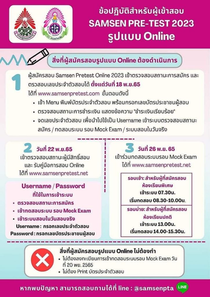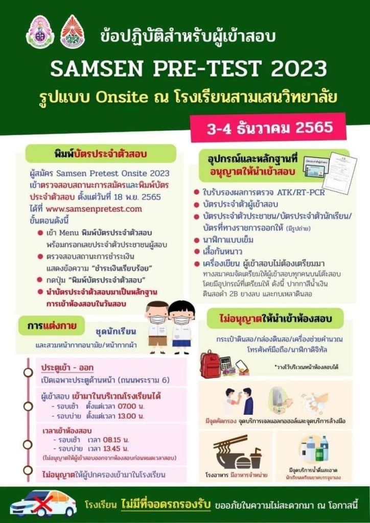 ข้อปฏิบัติ สำหรับผู้เข้าสอบ Samsen Pretest 2023