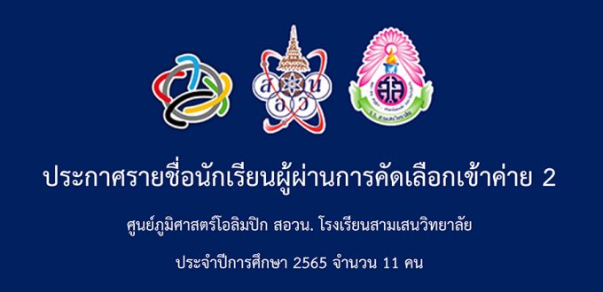 📄ประกาศ รายชื่อนักเรียนผู้ผ่านการสอบคัดเลือกเข้าค่าย 2 โครงการโอลิมปิกวิชาการ (สอวน.) สาขาคอมพิวเตอร์ ประจำปีการศึกษา 2565