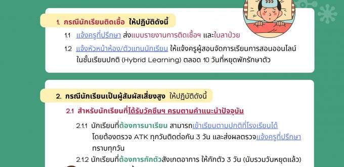 มาตรการป้องกันการแพร่ระบาดของโรคติดเชื้อไวรัสโคโรนา 2019 โรงเรียนสามเสนวิทยาลัย (เริ่มปฏิบัติ วันที่ 25 กรกฎาคม 2565) โดย งานอนามัยโรงเรียน กลุ่มบริหารกิจการนักเรียน