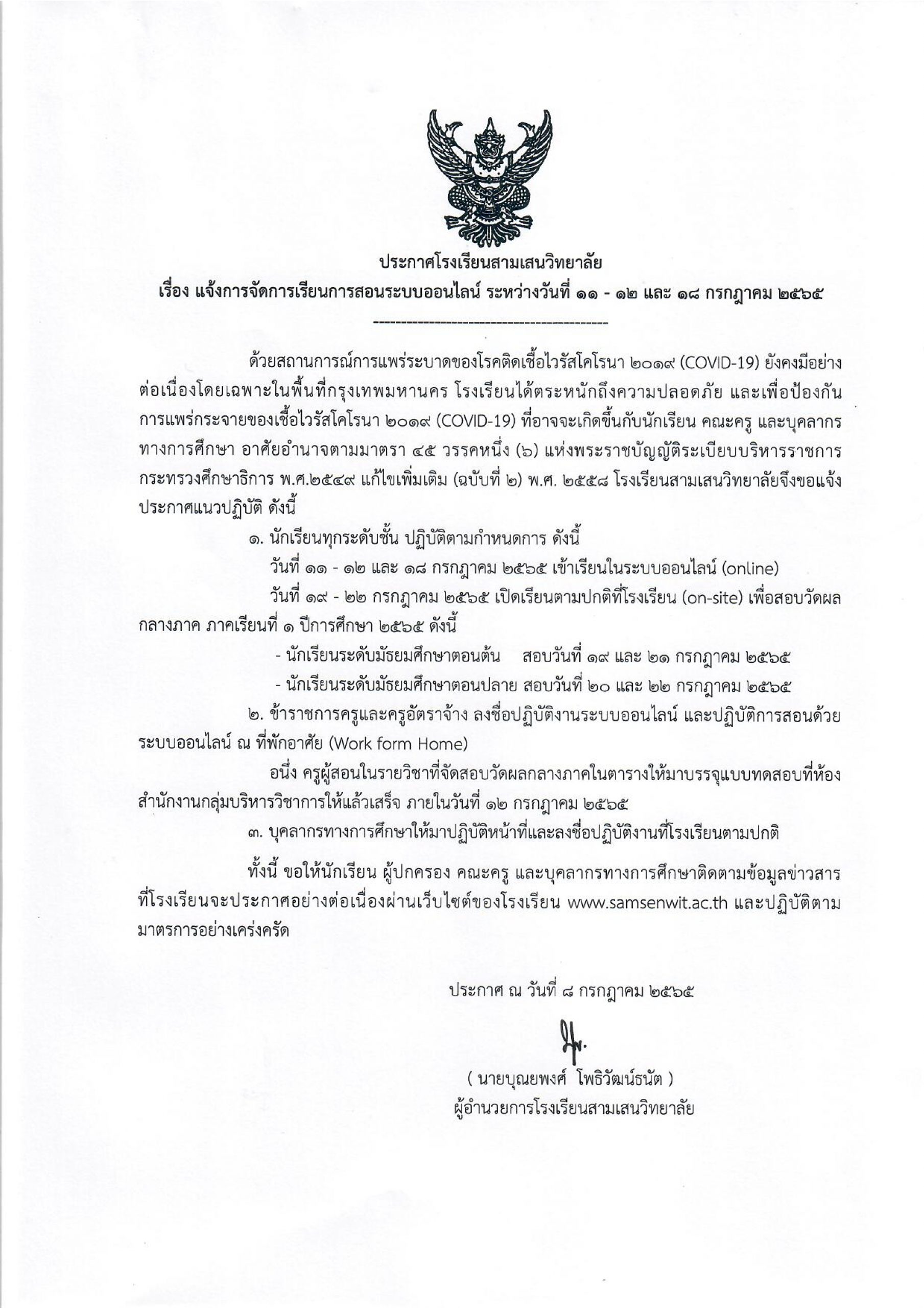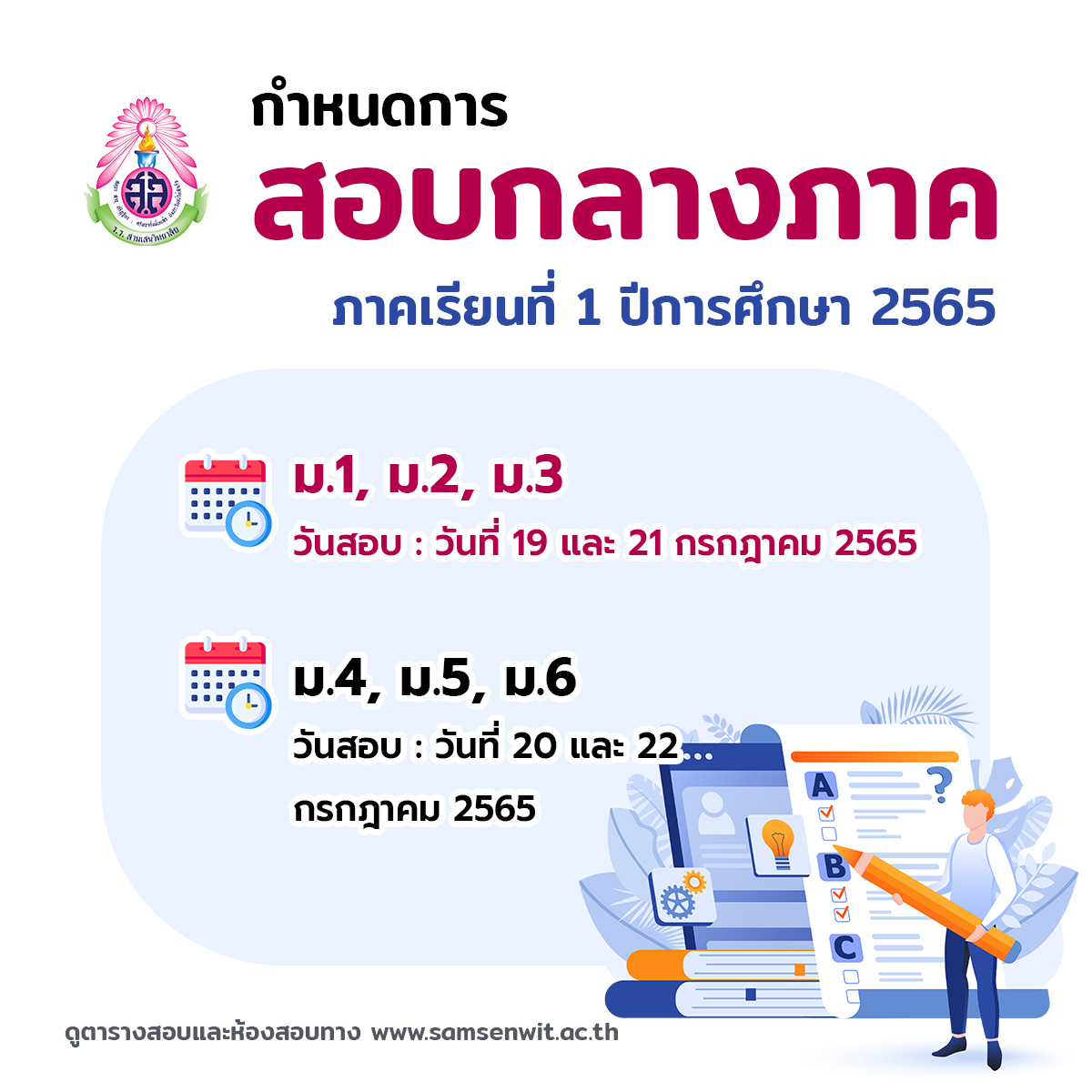 12.30 – 13.00 น. เช็กชื่อนักเรียน พร้อมชี้แจงการสอบ