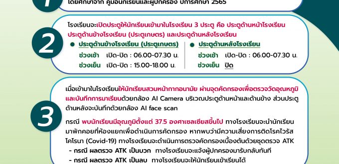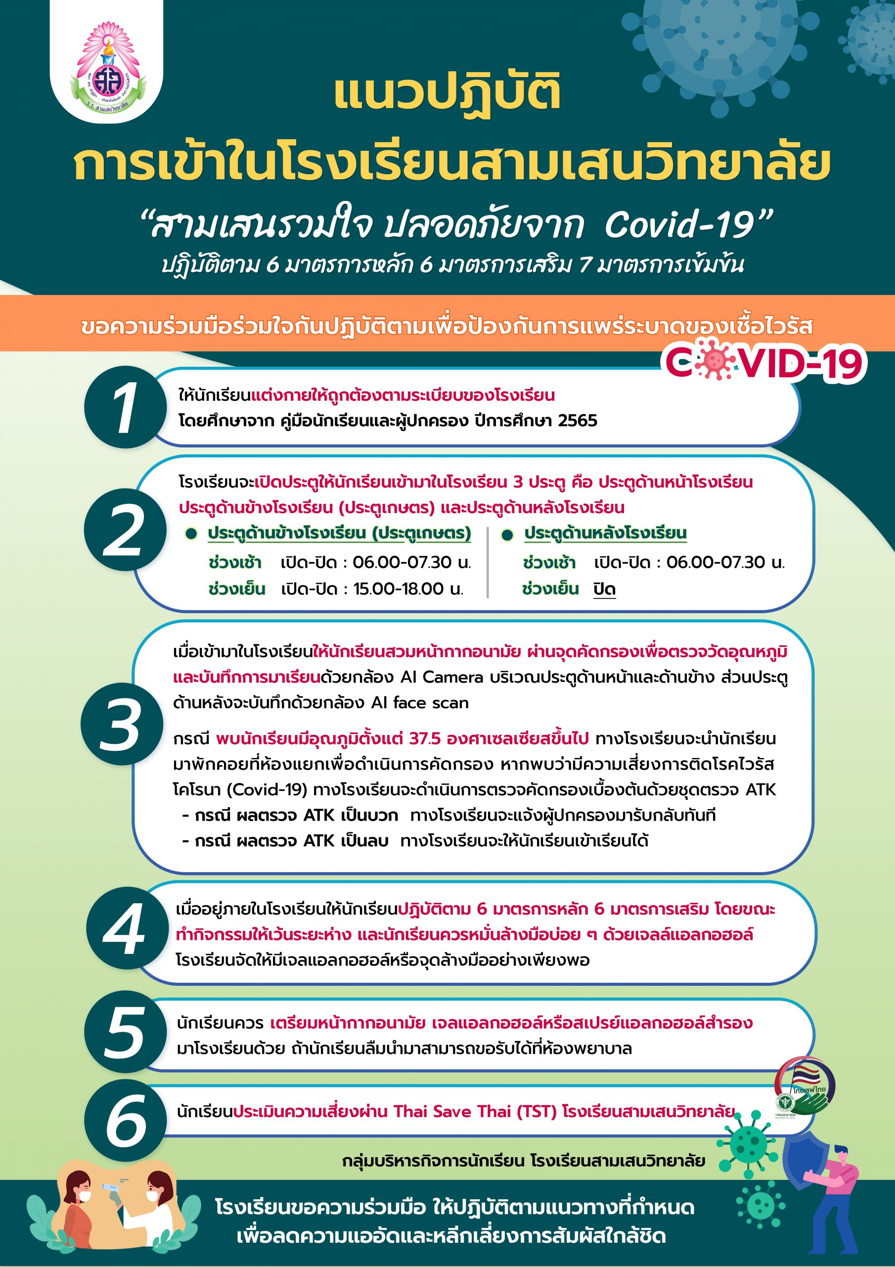 แนวปฏิบัติการเข้ามาในโรงเรียนและการเช็กชื่อมาเรียนของนักเรียนโรงเรียนสามเสนวิทยาลัย เริ่มใช้วันที่ 4 กรกฎาคม 2565