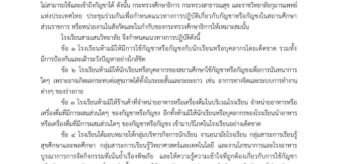 ประกาศโรงเรียนสามเสนวิทยาลัย เรื่อง การปฏิบัติตามนโยบายกระทรวงศึกษาธิการเกี่ยวกับกัญชาหรือกัญชงในสถานศึกษา ส่วนราชการ หรือหน่วยงานในสังกัด และในกำกับของกระทรวงศึกษาธิการ ประกาศโรงเรียนสามเสนวิทยาลัย เรื่อง การปฏิบัติตามนโยบายกระทรวงศึกษาธิการเกี่ยวกับกัญชาหรือกัญชง